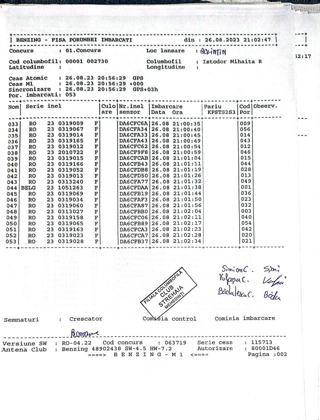 | 5 | Boborocu Ionut | MH1086 | BEN | Cerneti | [IMB P0] [IMB P1] [IMB P2] | [DES P0] [DES P1] [DES P2] |