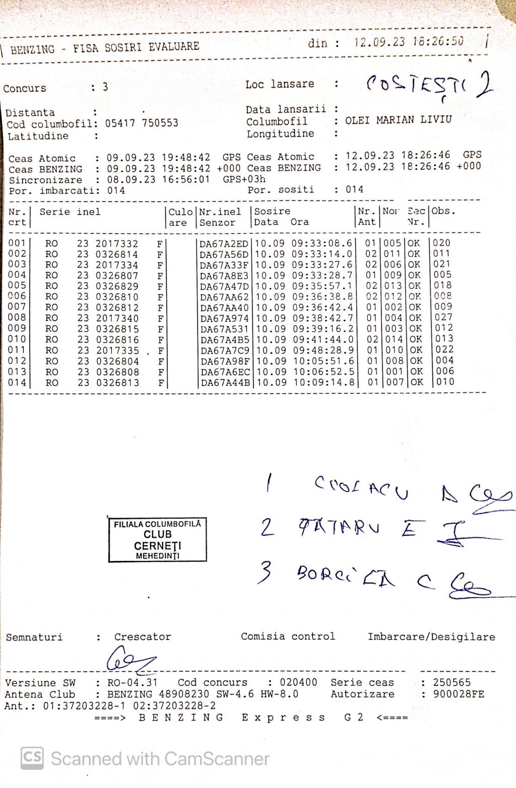 | 3 | Barbulescu Virgil | MH981 | BEN | Cerneti | [IMB P0] | [DES P0] |