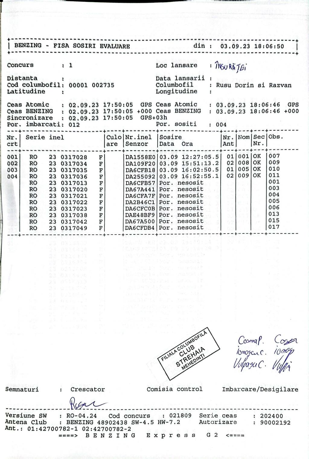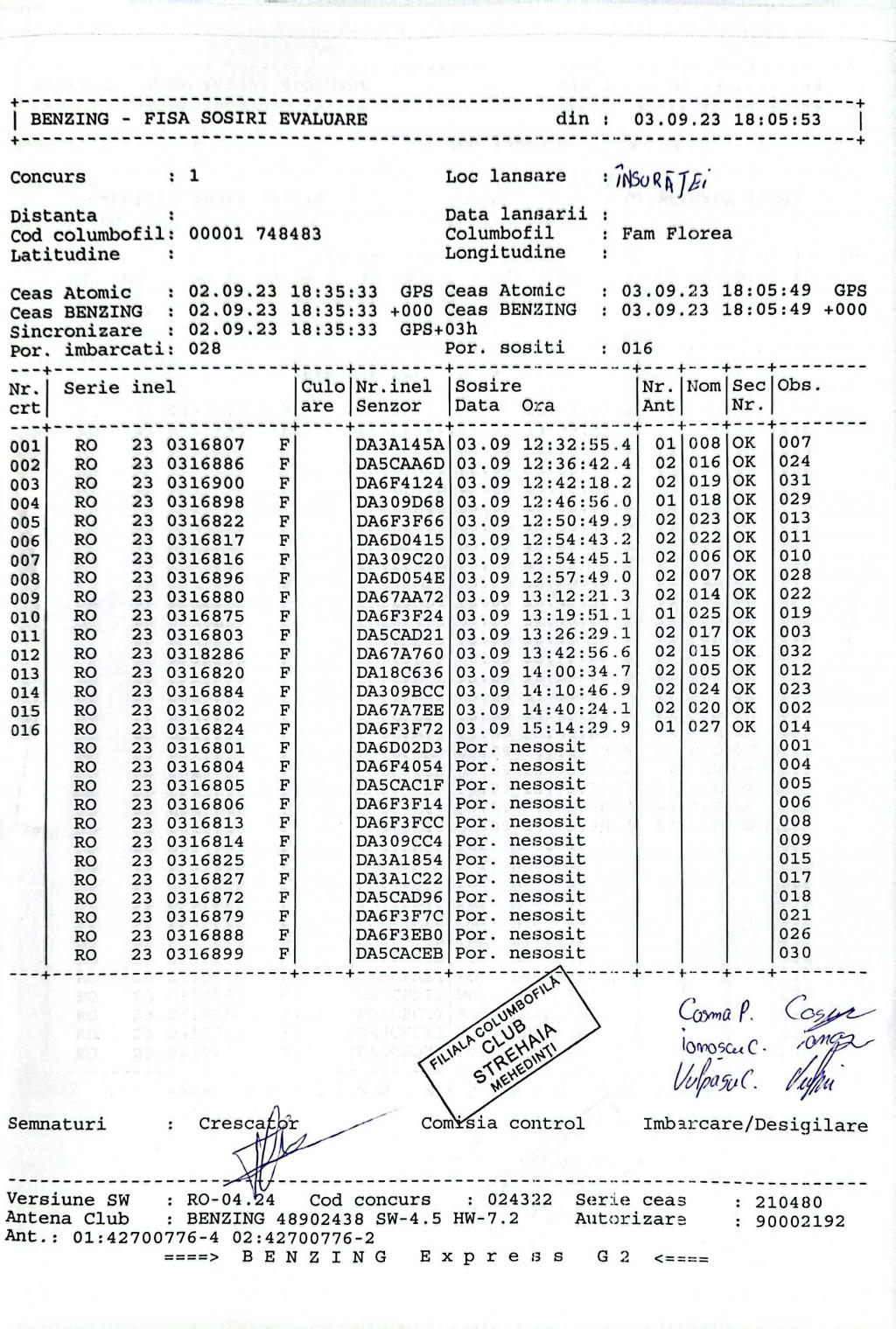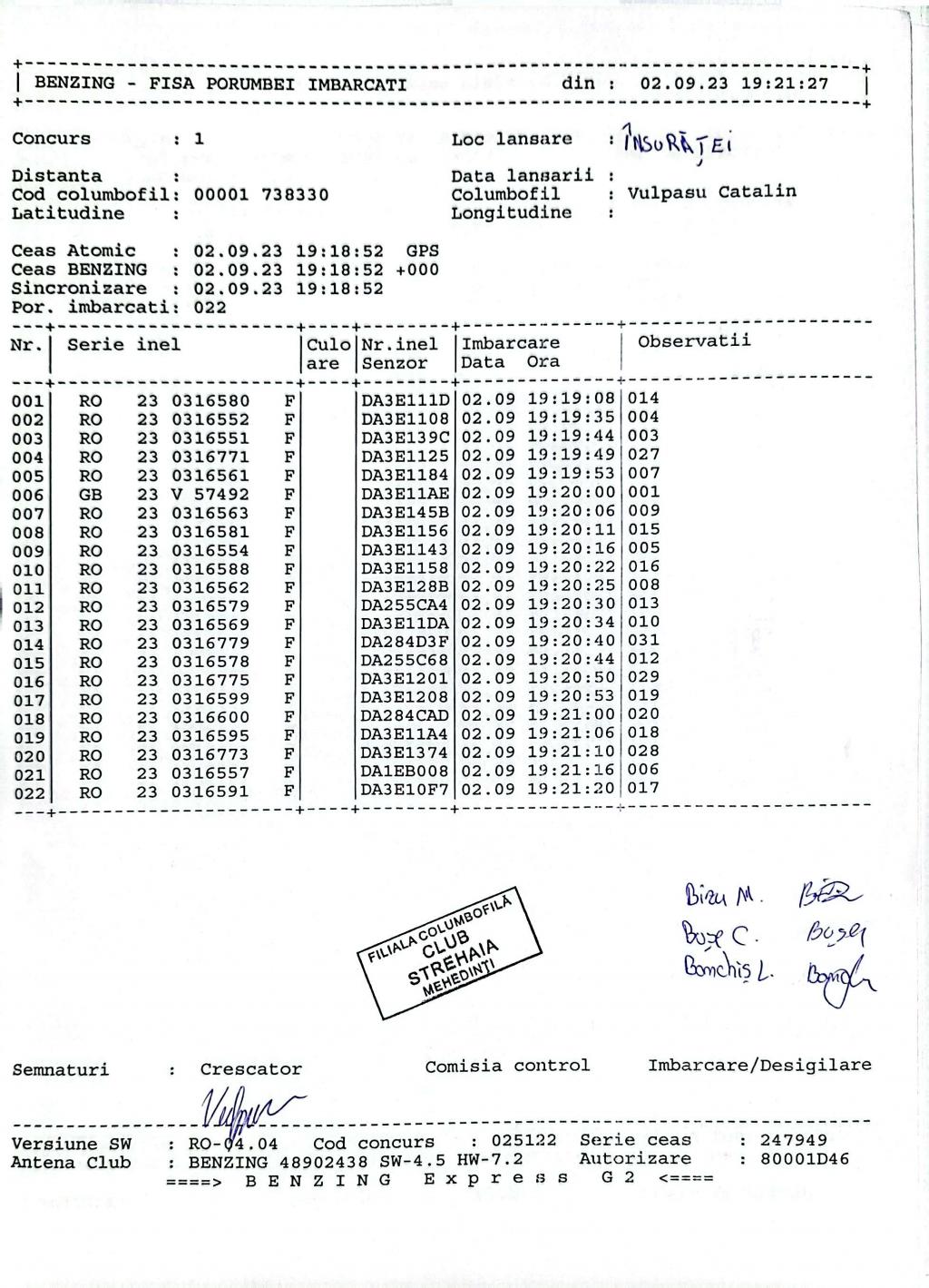 | 102 | Munteanu Marius Florinel | MH1165 | TOP | Strehaia |