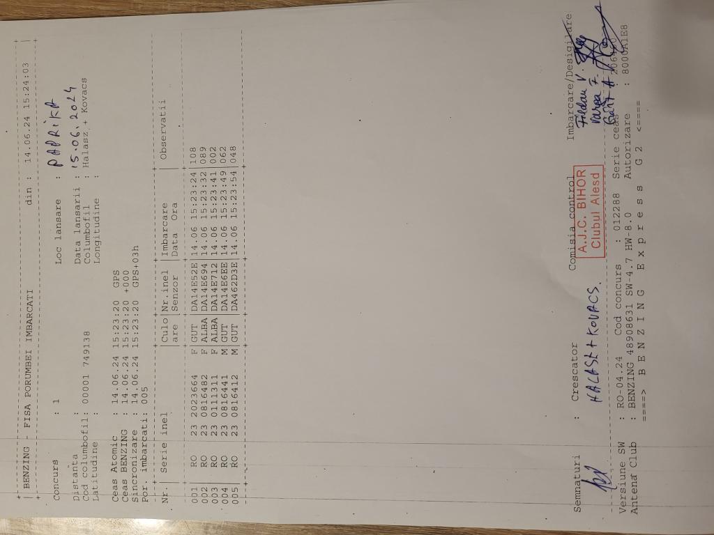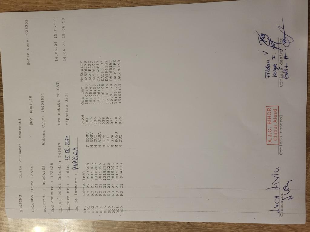 SIGILARE: [Îmbarcare etapa Paprika, club Ale?d, cresc?tor Fildan Vlad] [Sigilare Paprika , Club Alesd] [imbarcare 2 porumbei fam. Boit centrul Salonta] [Sigilare masina Salonta-Etapa Paprika] [Desigilare paprika 2] [Sigilare paprika 2] [Desigilare BH27PRL- Masina sosita de la Clubul Salonta la Clubul Oradea] [Desigilare BH37PRL - Masina sosita de la Clubul Sanmartin la Clubul Oradea] [Sigilare BH37PRL - Etapa Paprika 15.06.2024 la clubul Oradea] |