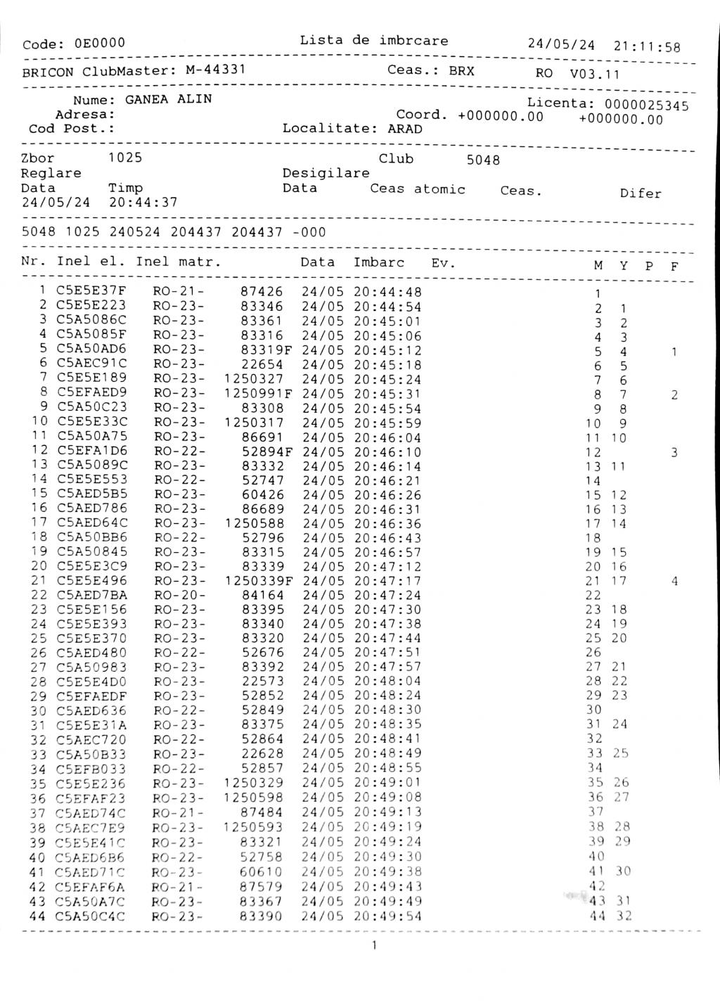 | 1. Procese verbale de imbarcare: | |||||