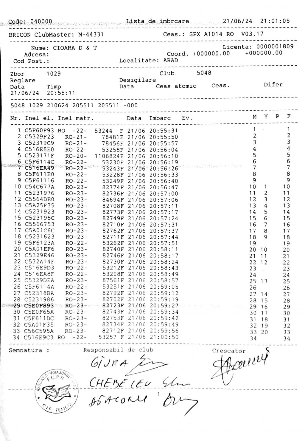 | 1. Procese verbale de imbarcare: | ||||