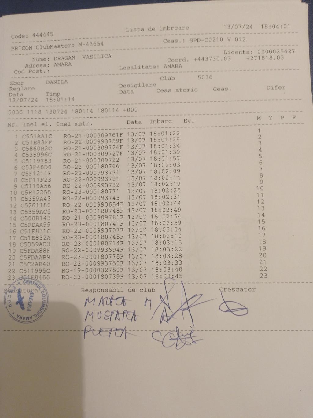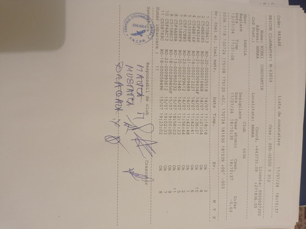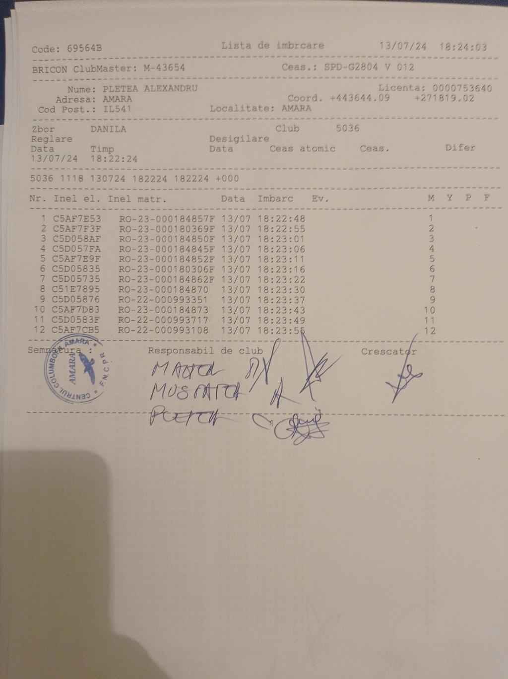 | 13 | Mustatea Adrian | IL499 | BRI | Amara | [IMB P0] | [DES P0] |