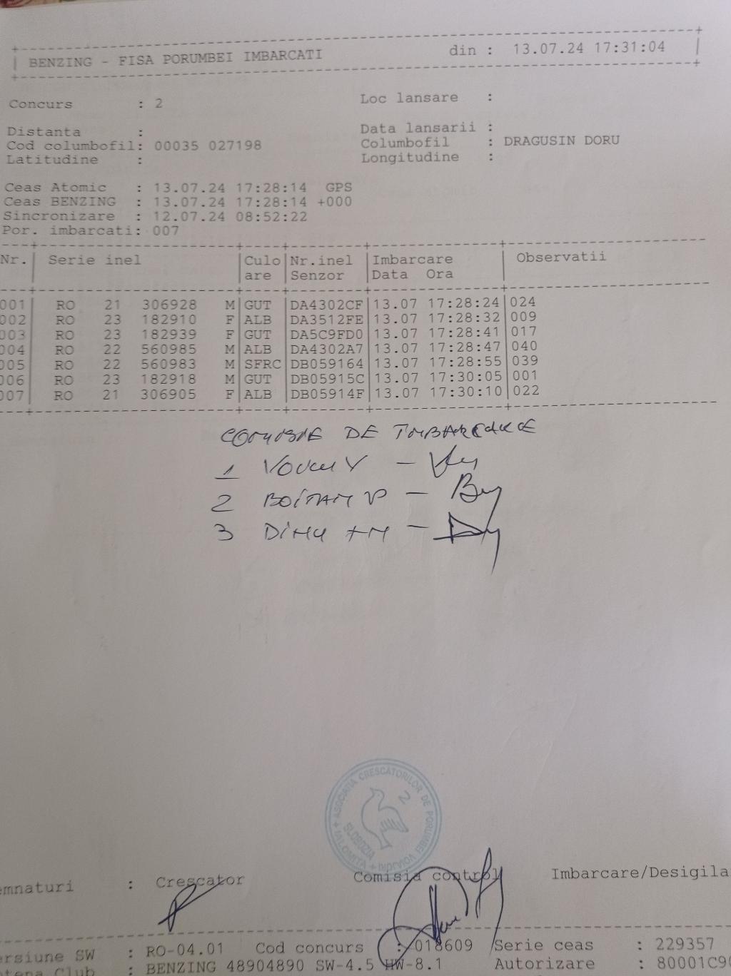| 1. Procese verbale de imbarcare: | ||||