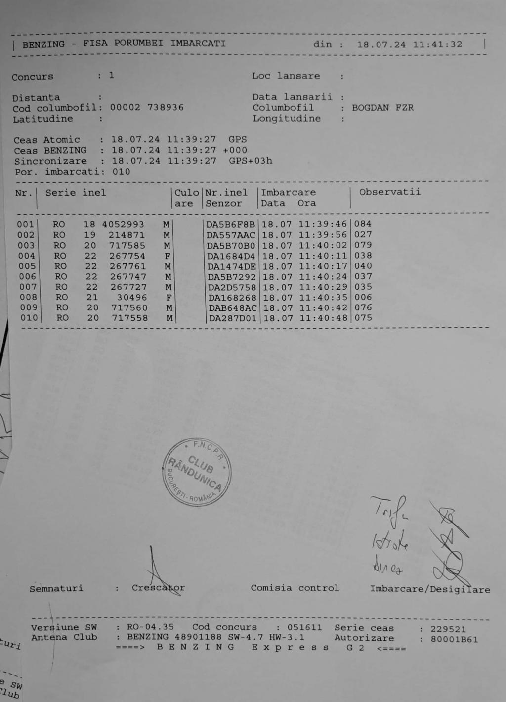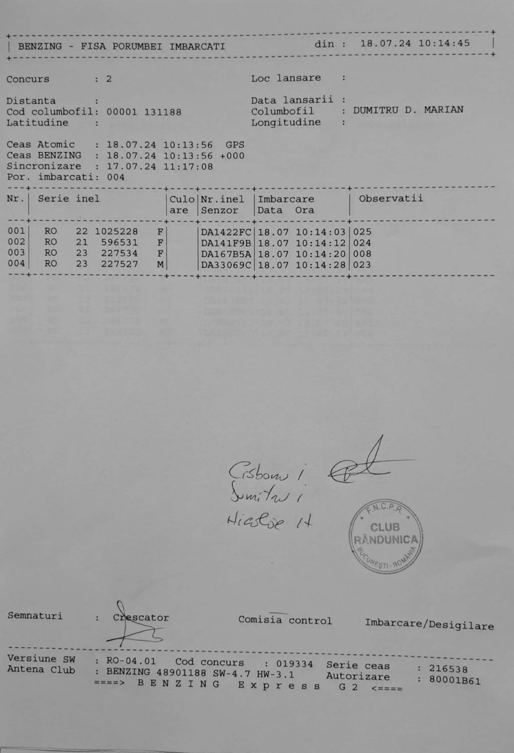 | 158 | Craciun Cristian | BB10119 | TOP | Randunica |