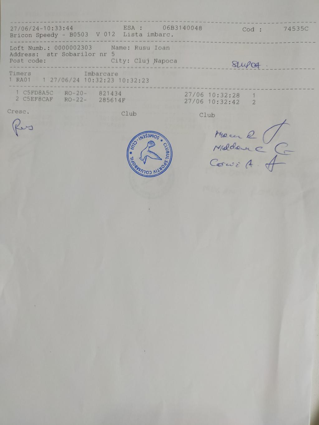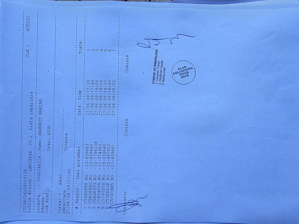 SIGILARE: [sigilii Tg Mures- Someseni] [Sosire masina de la Tg Mures , la Club Someseni etapa maraton Slupca] [Sigilare masina Club Someseni pt etapa maraton Slupca] [Sosire masina de la Alba la Club Someseni pt etapa maraton Slupca si desigilare.] [Sigilare masina AB la Club Someseni pt maraton Slupca] [Sigilare centru Teius AB03BDY] [Sigilare centru Teius AB15BDY] |