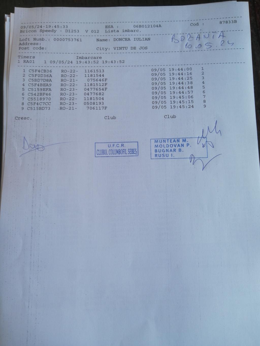 | 82 | Doncea Iulian | AB1364 | BRI | SEBES | [IMB P0] | [DES P0] |