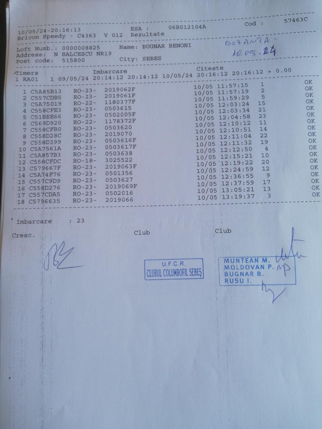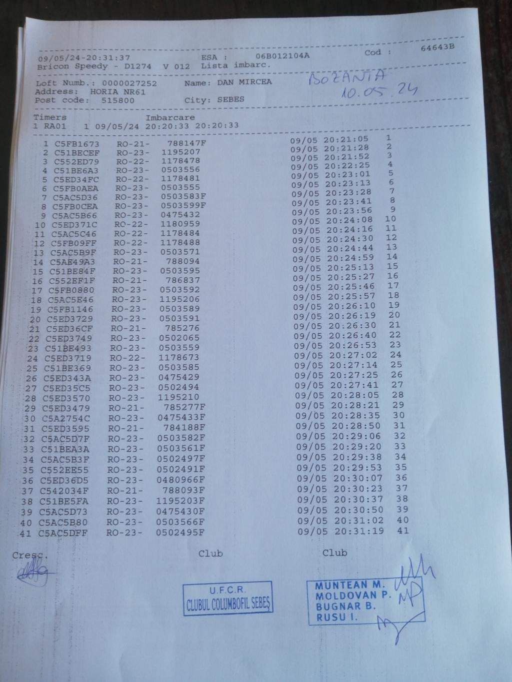 | 79 | Corches Razvan | AB1426 | BRI | SEBES | [IMB P0] | [DES P0] |