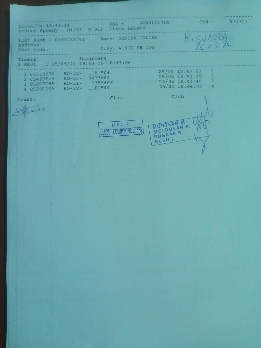 | 107 | Vlad + Bica | AB1353 | TOP | SEBES |