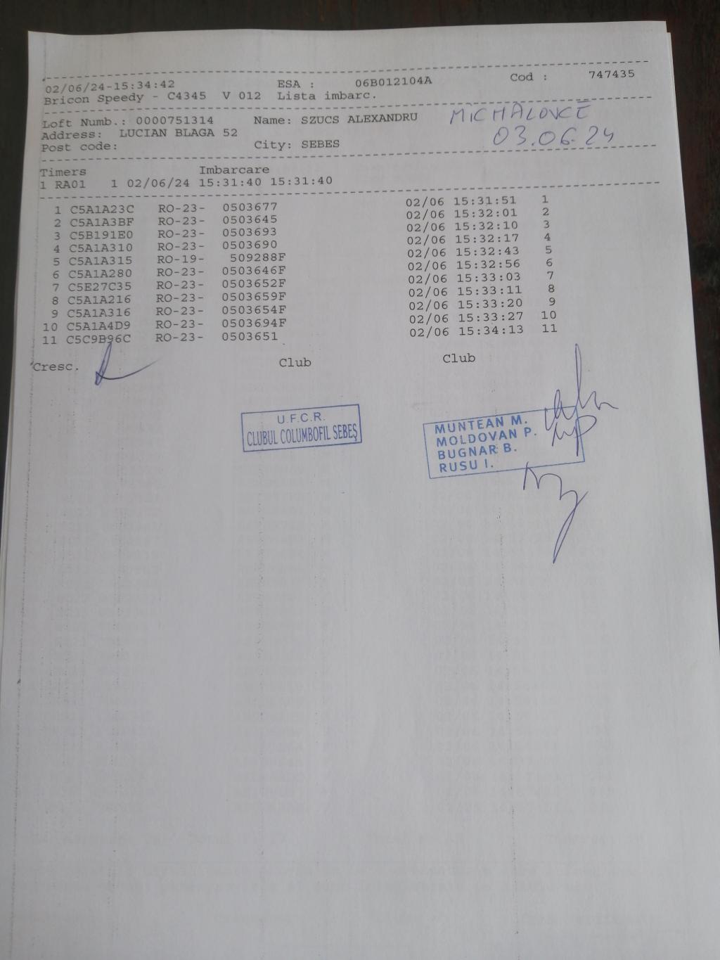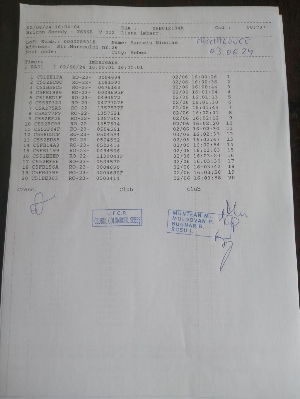 | 24 | Morcan Ovidiu | AB1216 | BRI | Alba Iulia | [IMB P0] | [DES P0] |