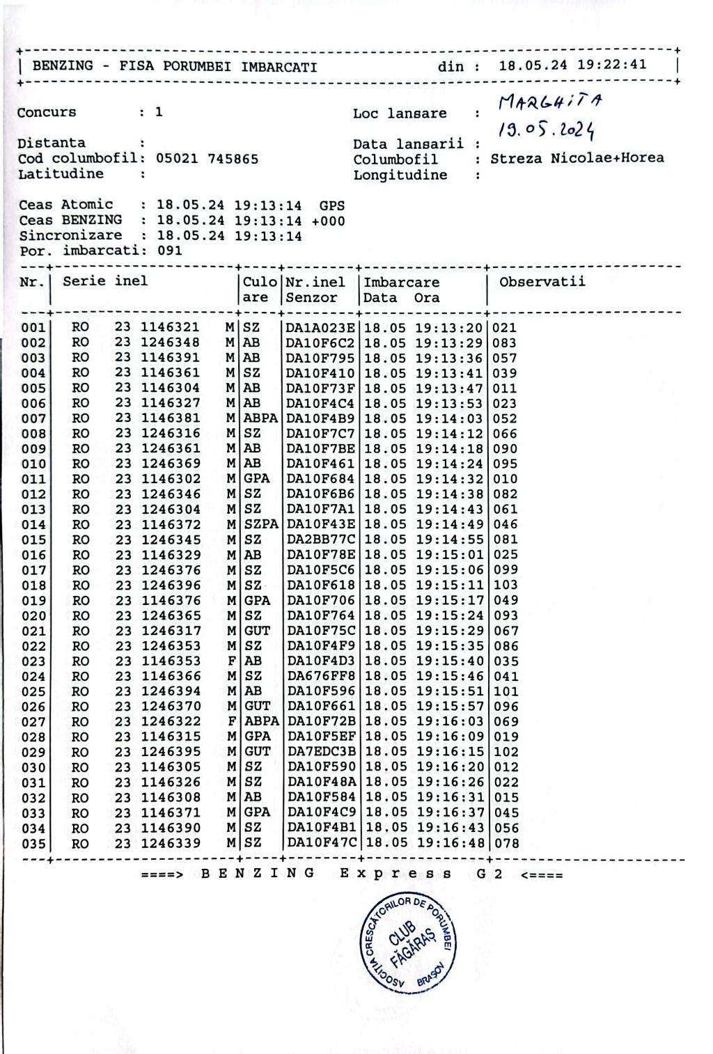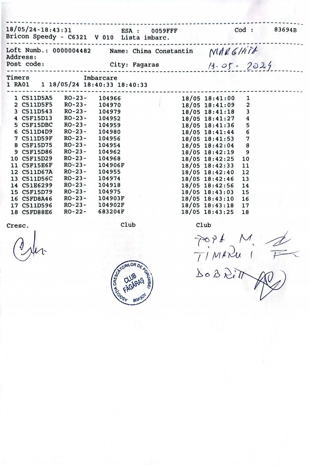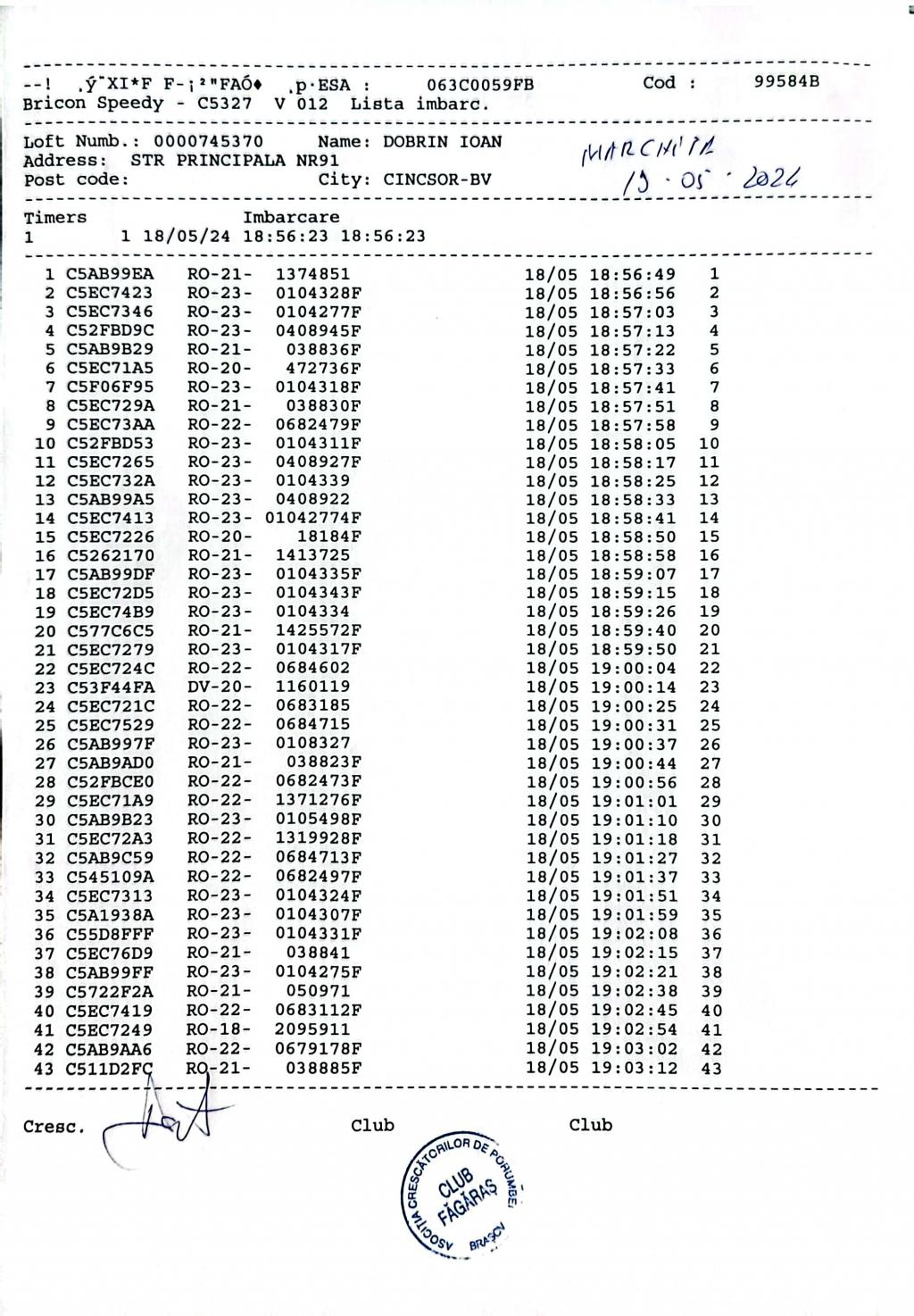 | 26 | Neamtu Constantin | BV742 | TOP | Fagaras | [IMB P0] |