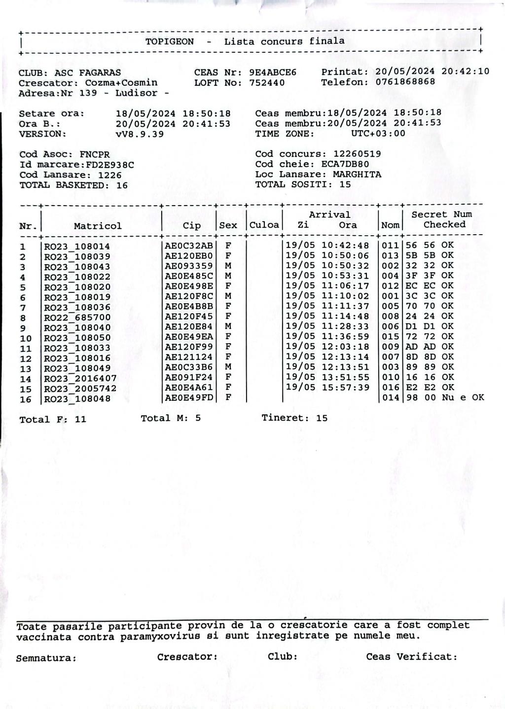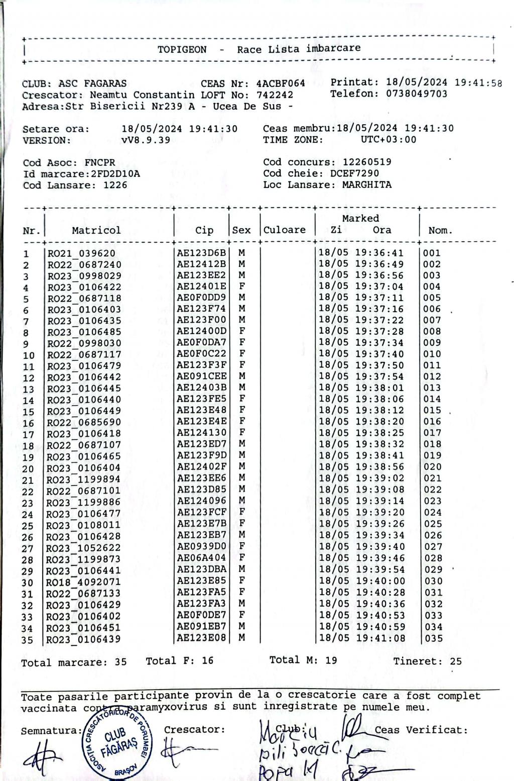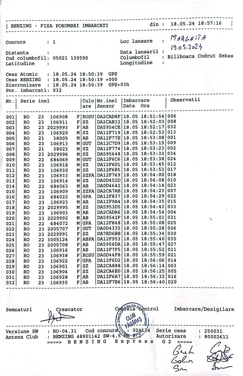 | 26 | Neamtu Constantin | BV742 | TOP | Fagaras | [IMB P0] |