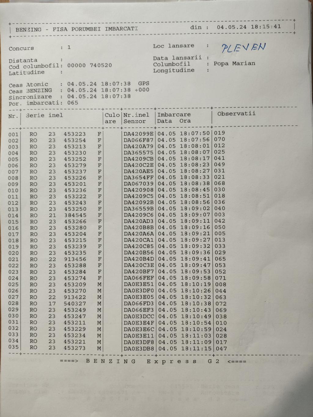 64 | Team Potoroaca Loft | VL1006 | BEN | Rm. Valcea |