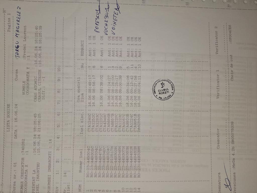RECLEMARE: [Radu + Catany 3 por] SIGILARE: [Sigilare rm valcea merge la Roesti] [Sosire masina] [Plecare masina] [desigioare centrul Galicea AG 12 PEU] [sigilare centrul Galicea AG 12 PEU] RECLEMARE: [imbarcare crescator cu mai putin de 3 porumbei] |