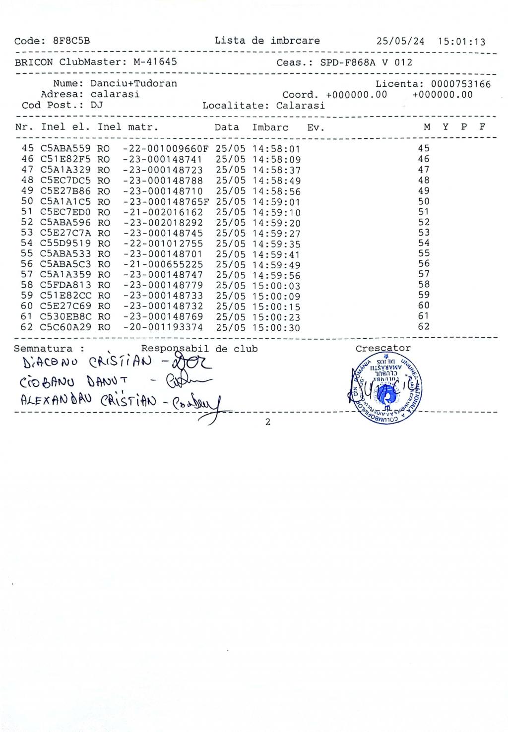 | 121 | Drutu Ionut & Ciontu Cornel | DJ3169 | TOP | Filiasi |