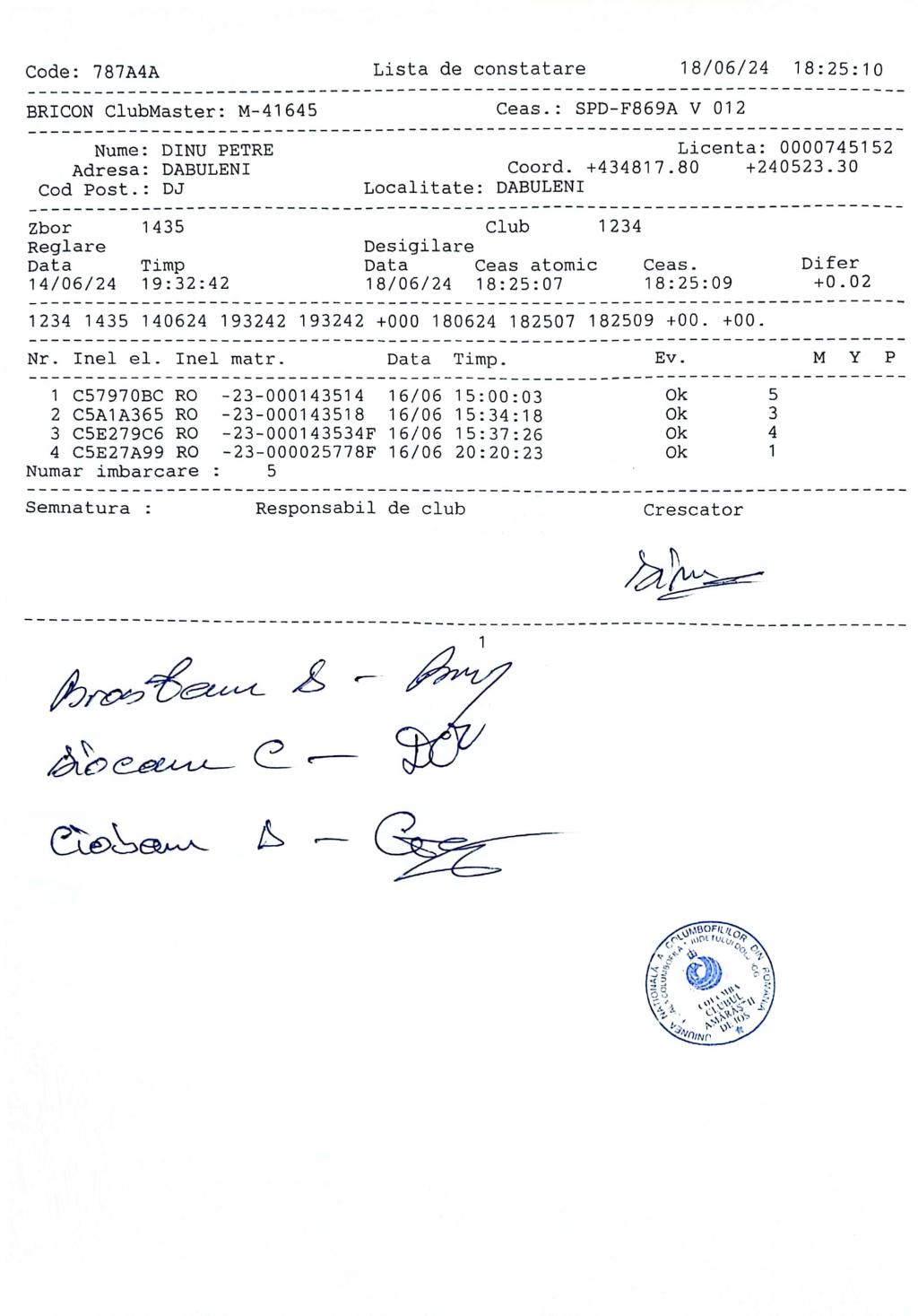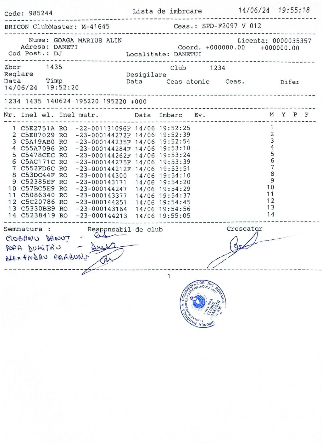 SIGILARE: [Verificare sigilii,club Leu,Radauti-Prut 16.06.2024] [Sigilare Club Leu,Radauti-Prut 16.06.2024] [Desigilare club Craiova-Elite Concurs R?d?u?i-Prut 16.06.2024] RECLEMARE: [Reclemare Vochin George] SIGILARE: [Sigilare club Craiova-Elite Concurs R?d?u?i-Prut 16.06.2024] [sigilare club Bailesti] RECLEMARE: [Reclemare Circiumaru Mihai ] [Reclemare Circiumaru Adrian ] SIGILARE: [Desigilare club Segarcea ] [sigilare club Segarcea ] [Imbarcare Vigariu Max Cristian ] [Desigilare club Amarasti] [sigilare club Amarasti] [Desigilare club Filiasi] [sigilare club Filiasi] |