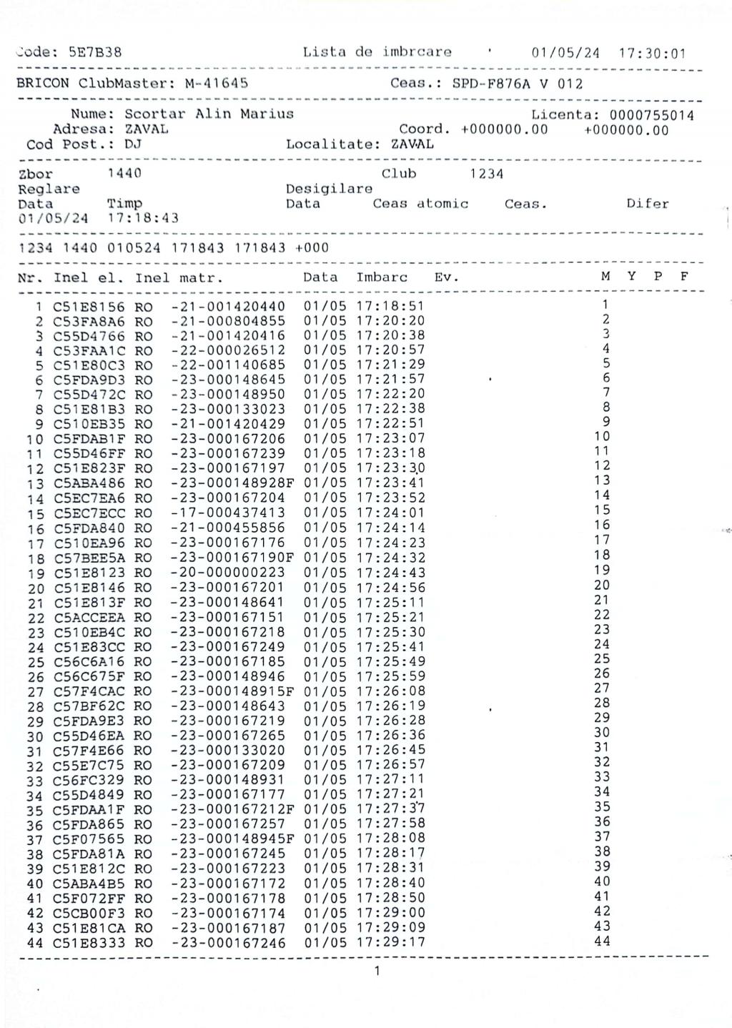 | 37 | Voicu Marian Ionut | DJ795 | BRI | Amarastii De Jos | [IMB P0] | |