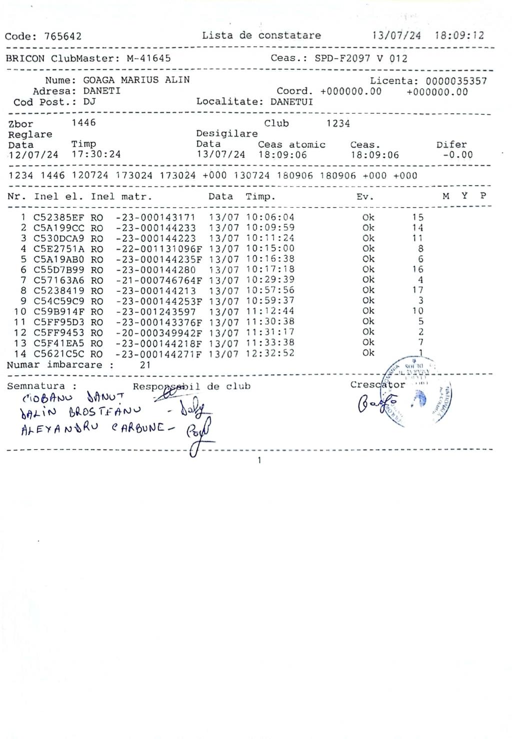 | 13 | Musat Vasile Claudiu | DJ254 | TOP | Amarastii De Jos |