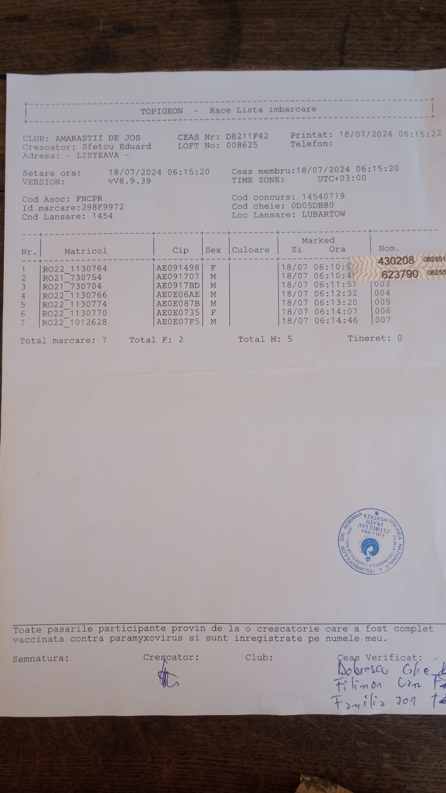 446 | Hoara Ilie Si Cumpanasu Ion | VL1150 | BEN | Craiova - Elite | [IMB P0] | [DES P0] [DES P1] |