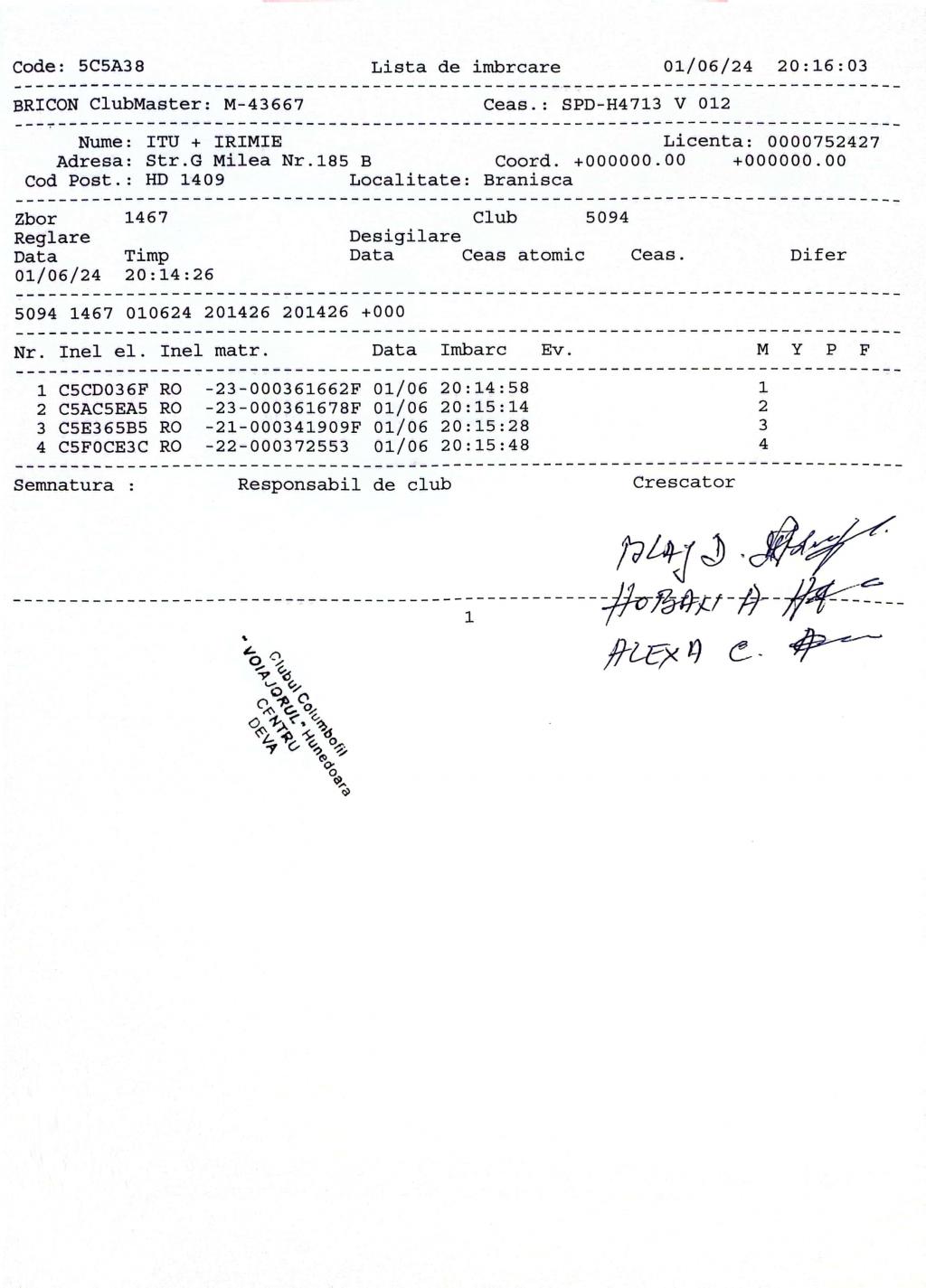 | 73 | Renghea Florin | HD912 | TOP | Simeria |