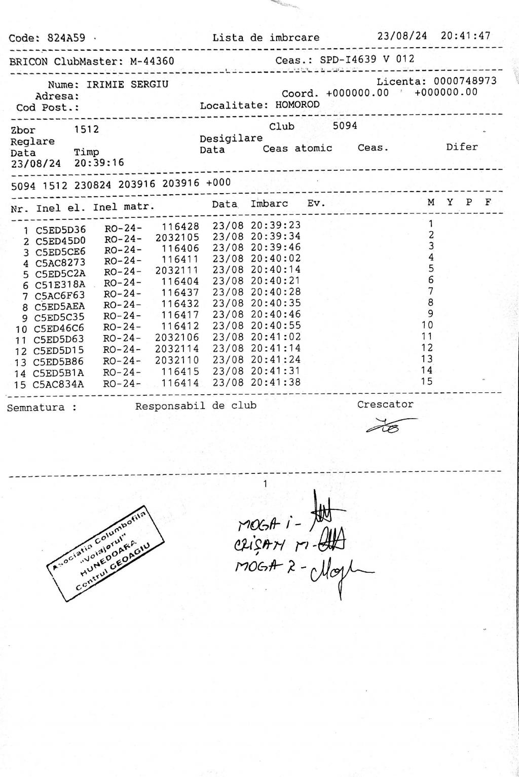 | 2 | Bogdan Marcel | HD1498 | BRI | Geoagiu | [IMB P0] | [DES P0] |