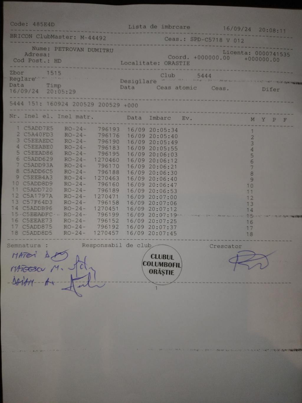 | 21 | Dancescu Liviu | HD1428 | BRI | Orastie | [IMB P0] | [DES P0] |