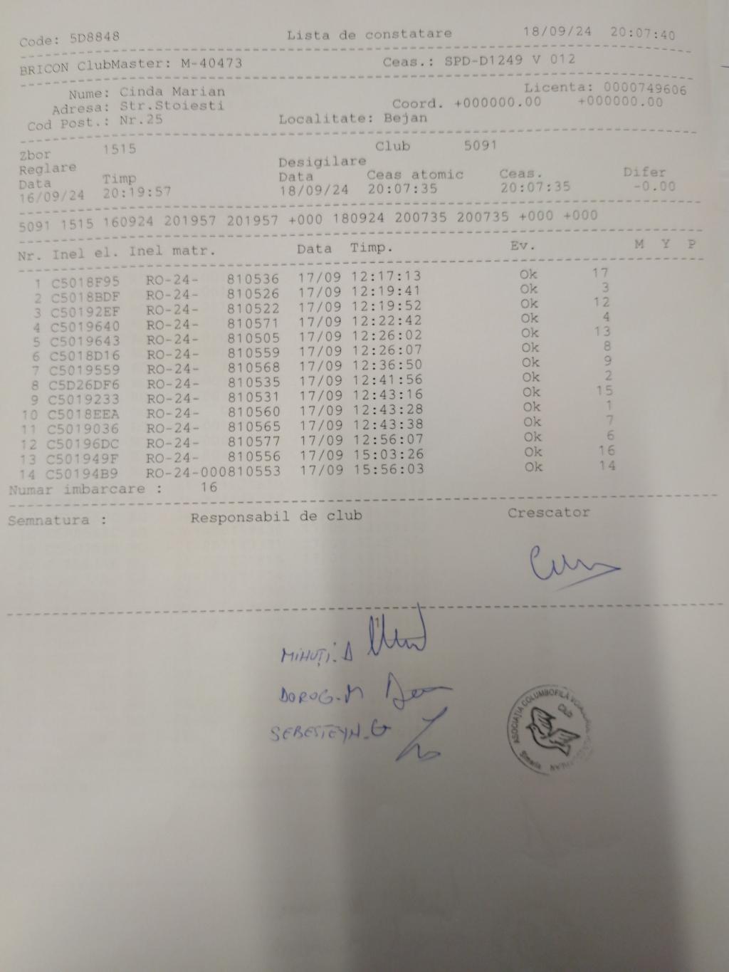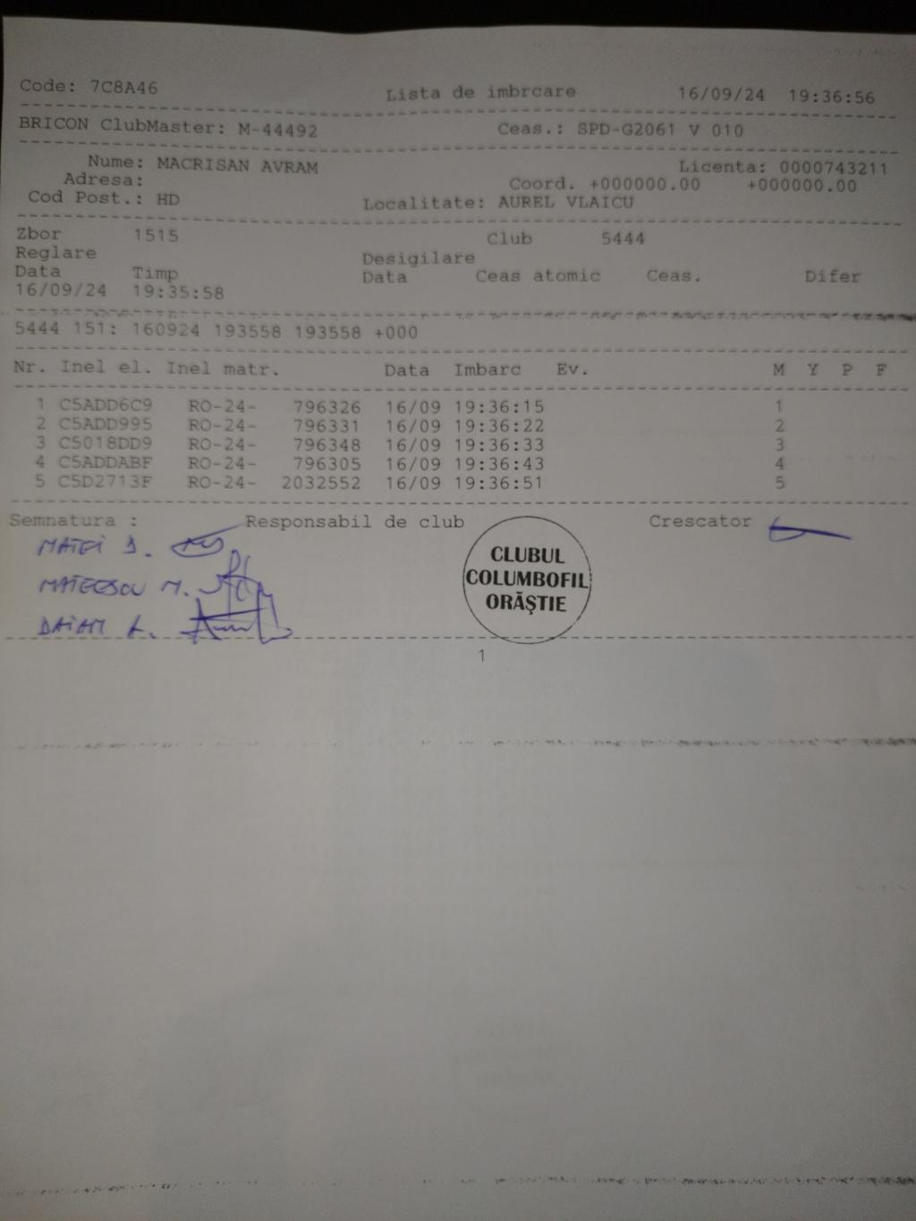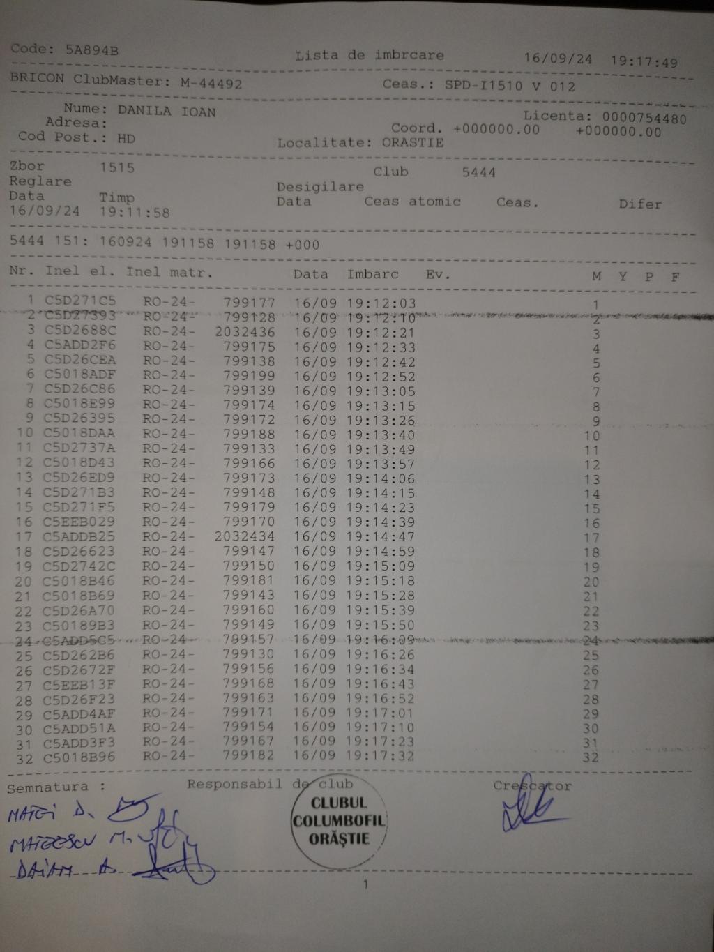 | 38 | Popescu Laurentiu | HD1165 | BRI | Orastie |