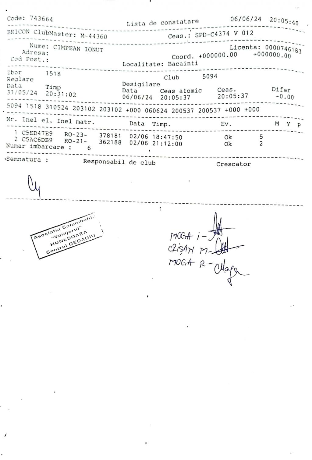 | 54 | Moga Petru Ciprian | HD294 | TOP | Deva |