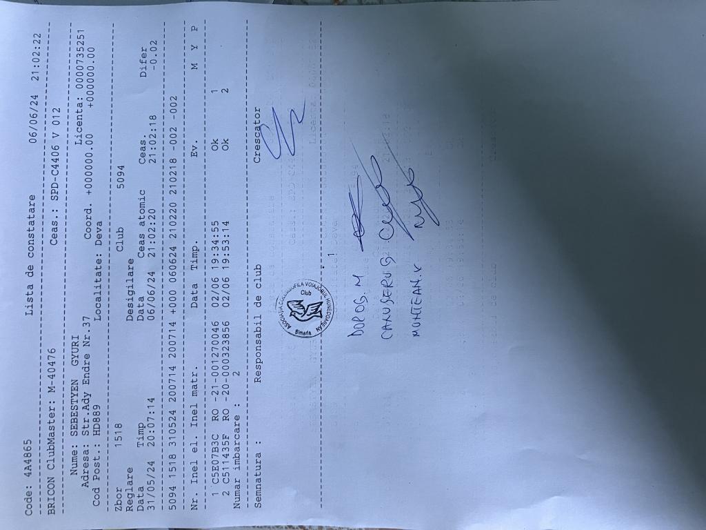 | 101 | Duma Vasile | HD466 | TOP | Deva |