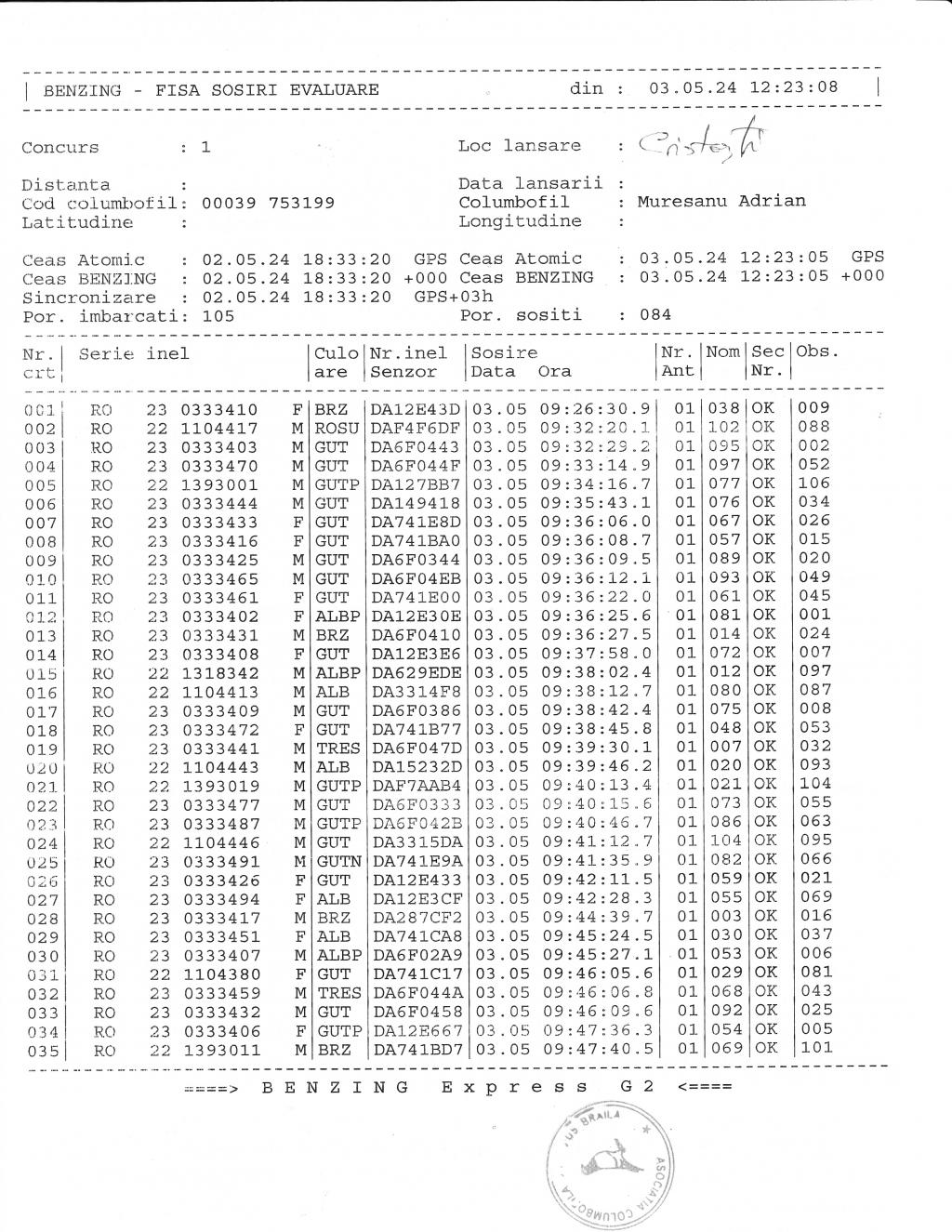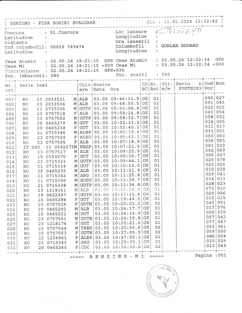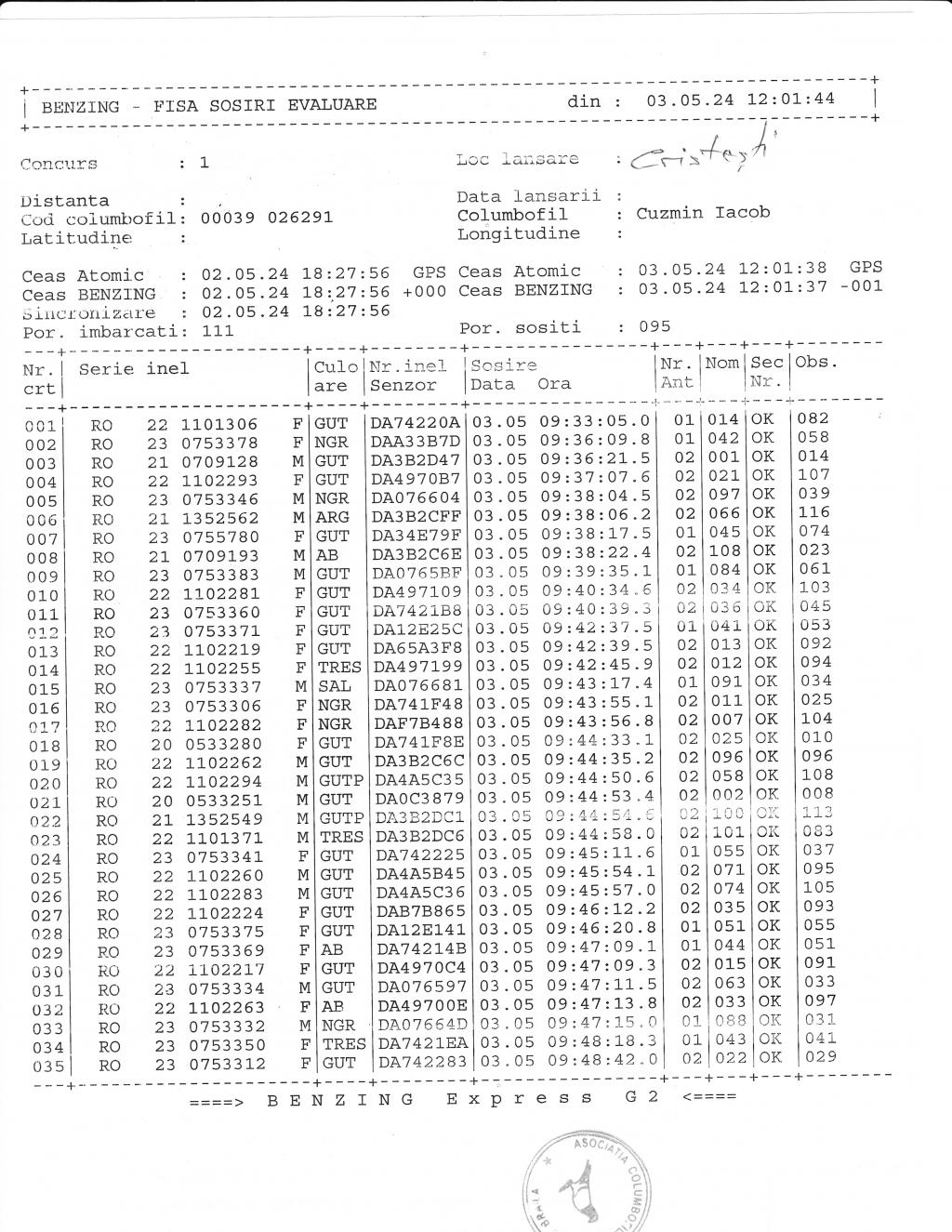 SIGILARE: [Sigilare concurs 1 viteza Cristesti, jud. Iasi] [VIDEO SIGILII IMBARCARE CRISTESTI 02.05.24] |
