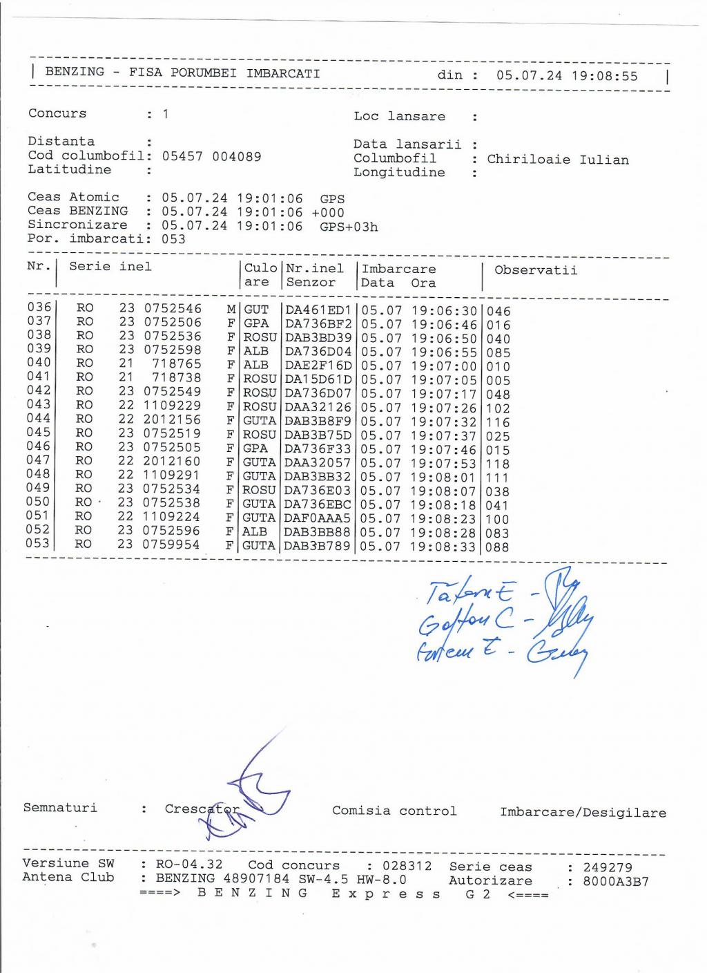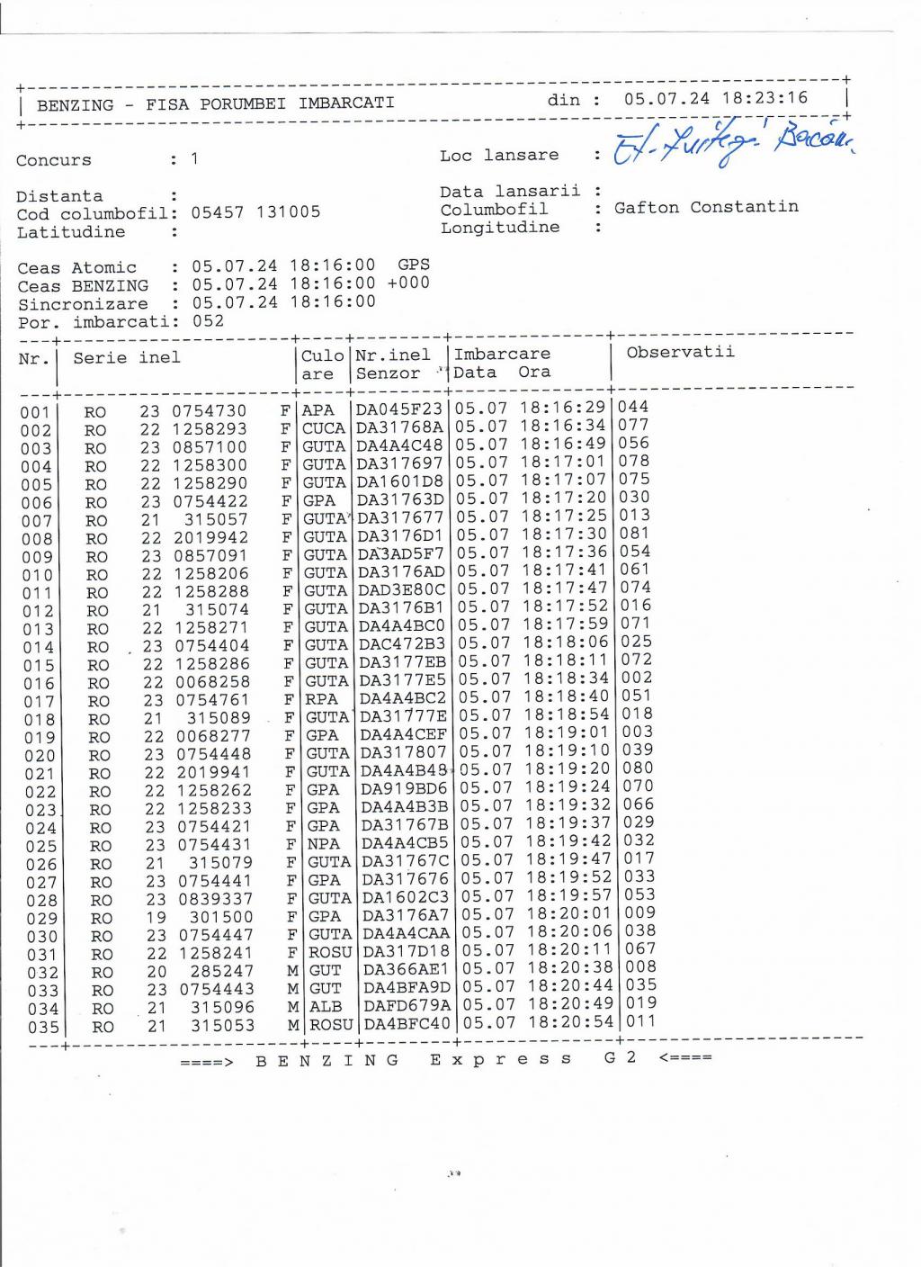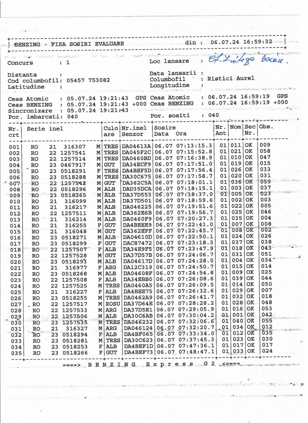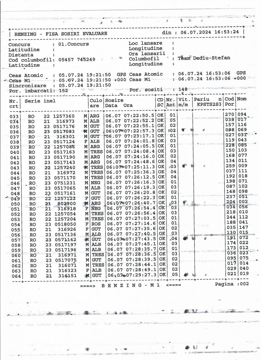 | 36 | Caraman Alexandru | GL583 | TOP | Galati |