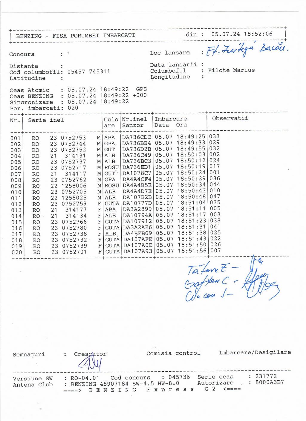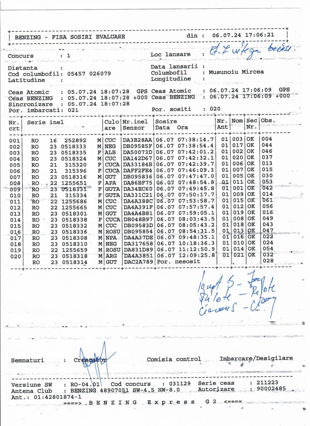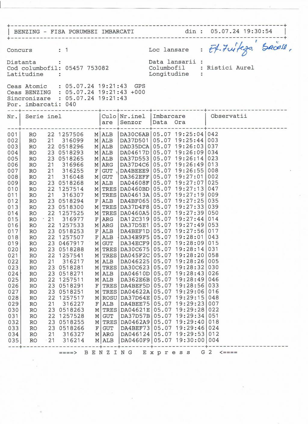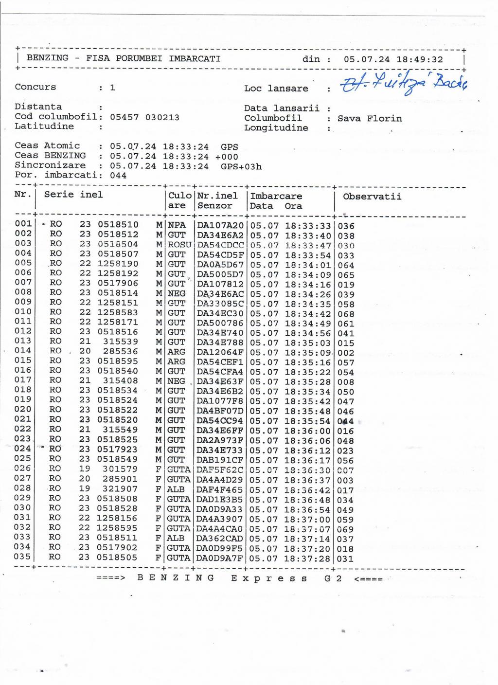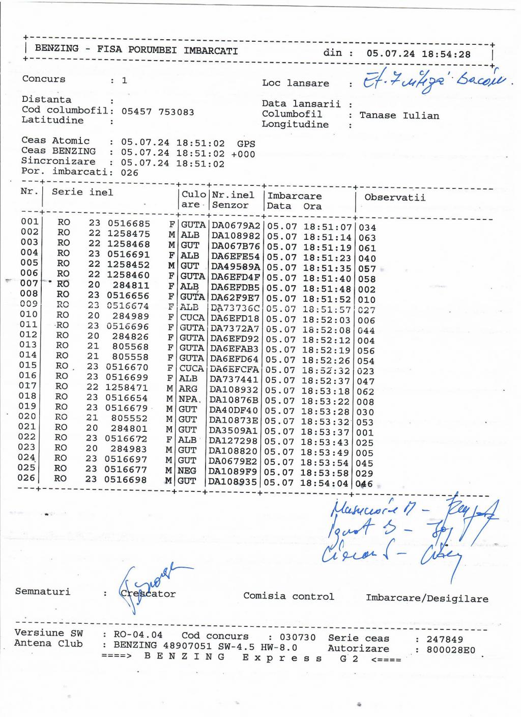 | 36 | Caraman Alexandru | GL583 | TOP | Galati |