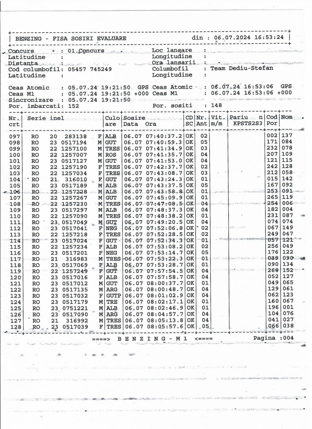 | 61 | Team Dediu - Stefan | GL424 | BEN | Galati |