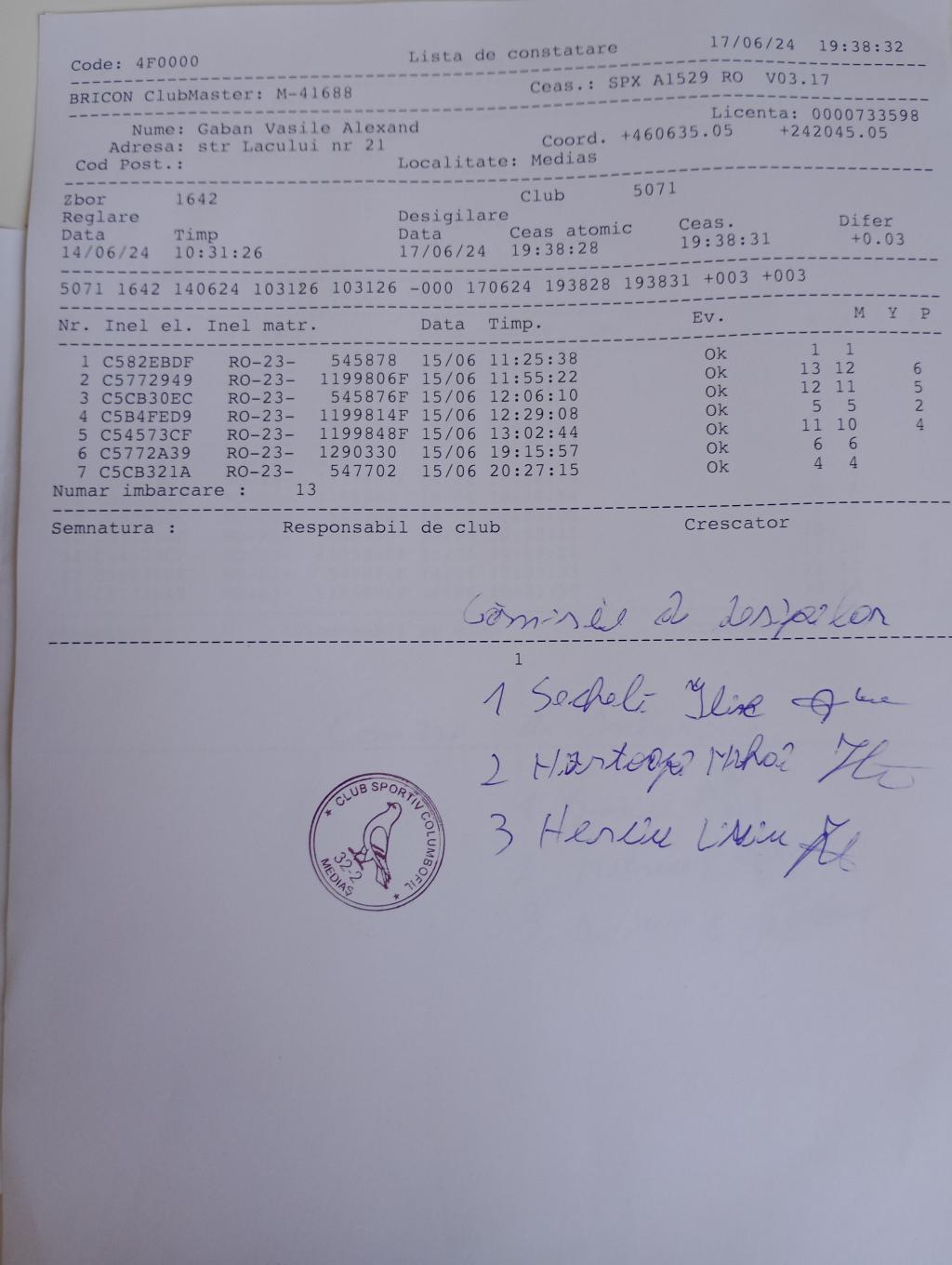 | 1. Procese verbale de imbarcare: | |||