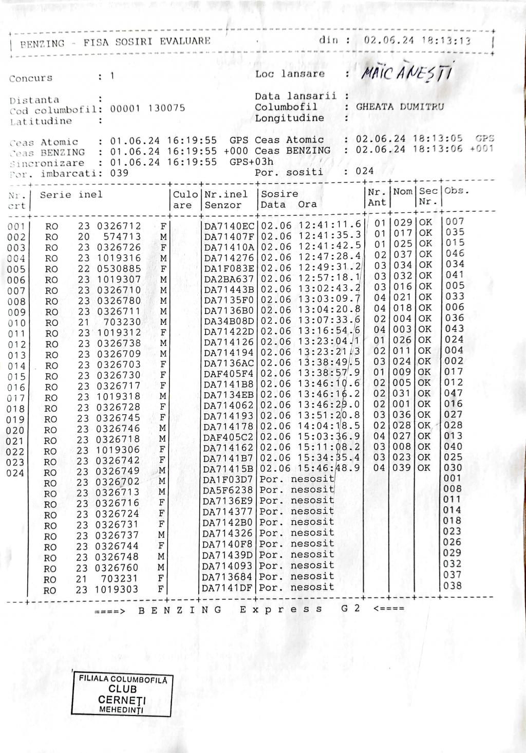 | 38 | Patrutescu Valentin | MH582 | BEN | Cerneti |