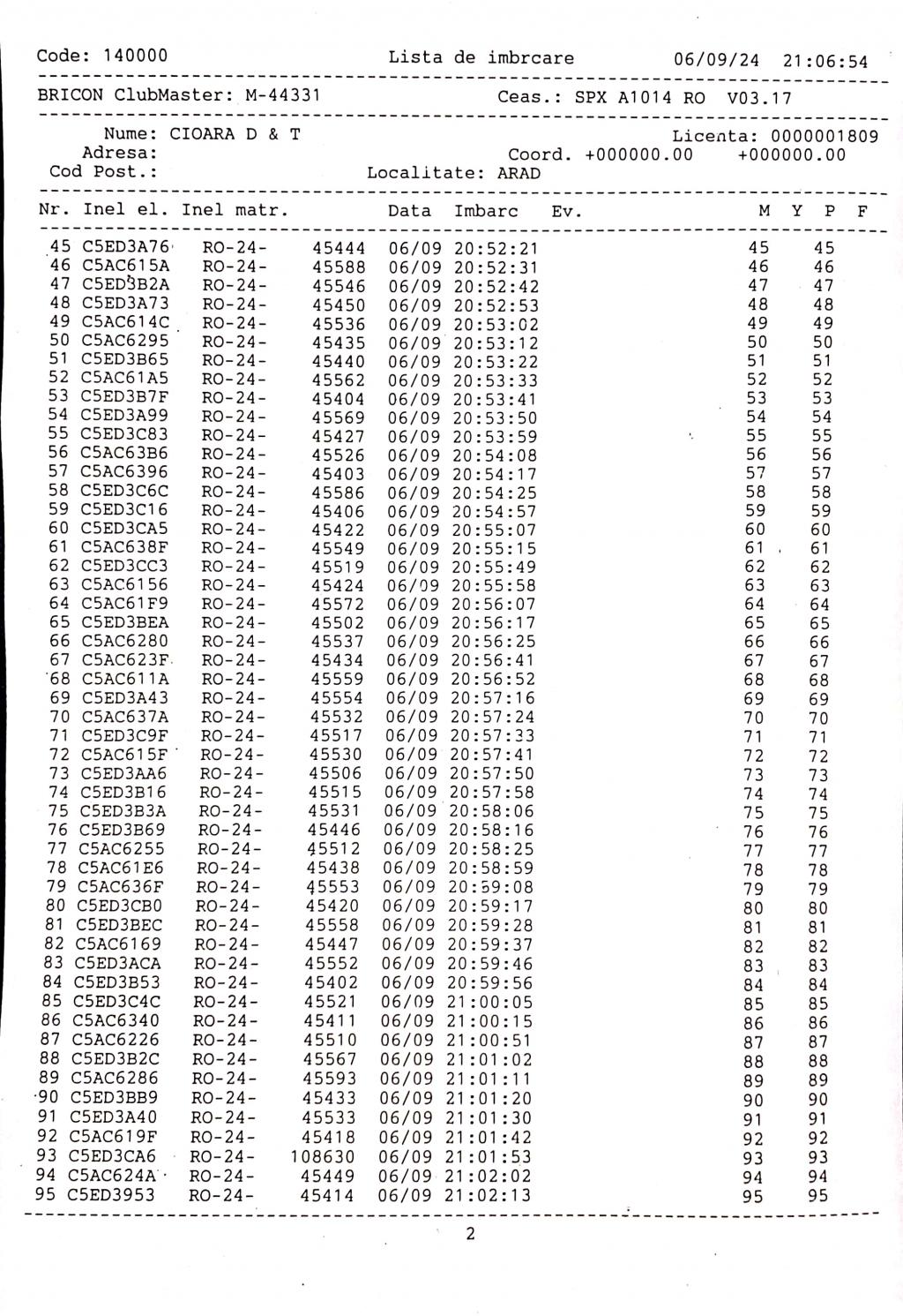 | 1. Procese verbale de imbarcare: | ||