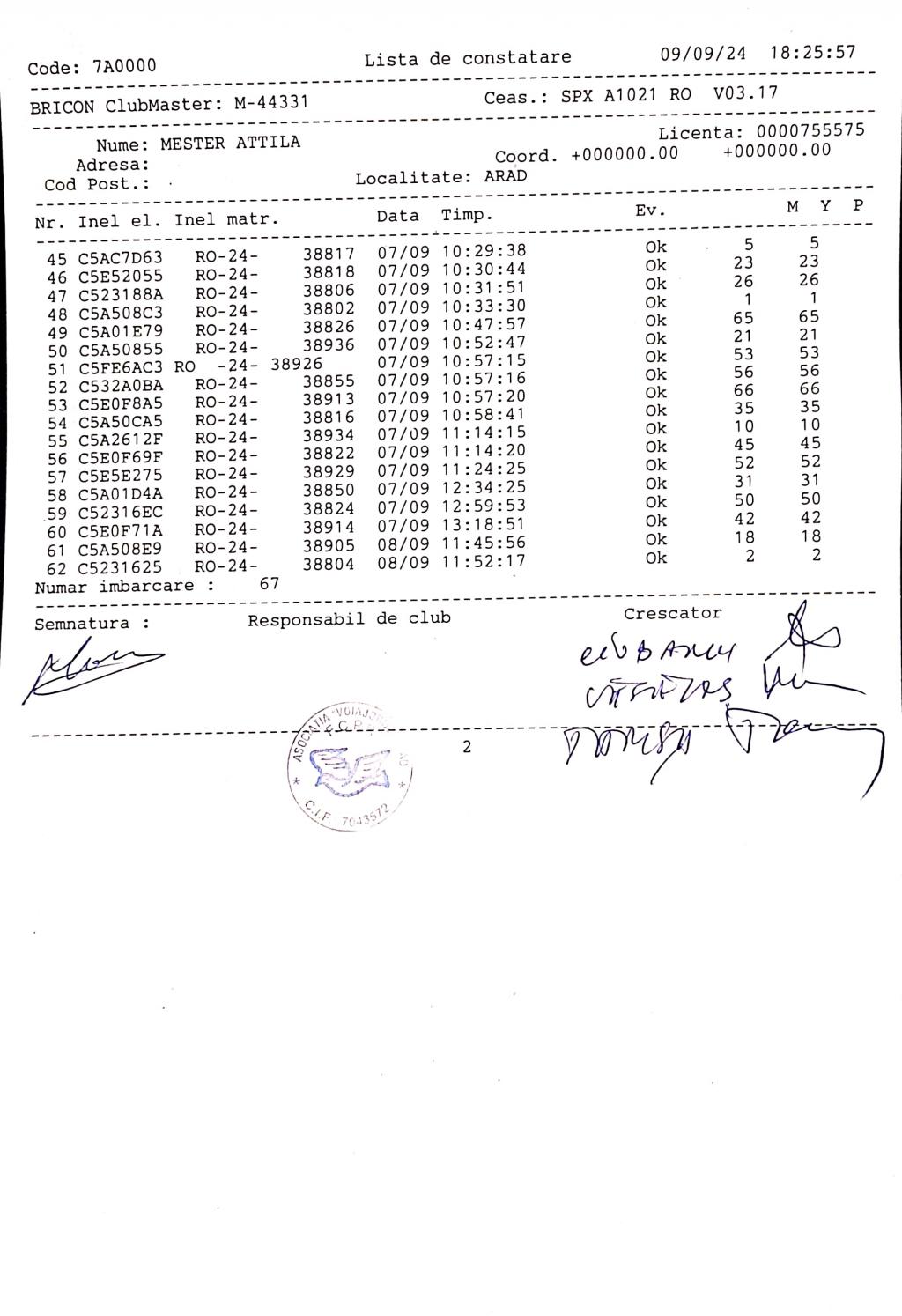 SIGILARE: [Sigilare AR10GEK Centrul Arad etapa de Kecskemet] |