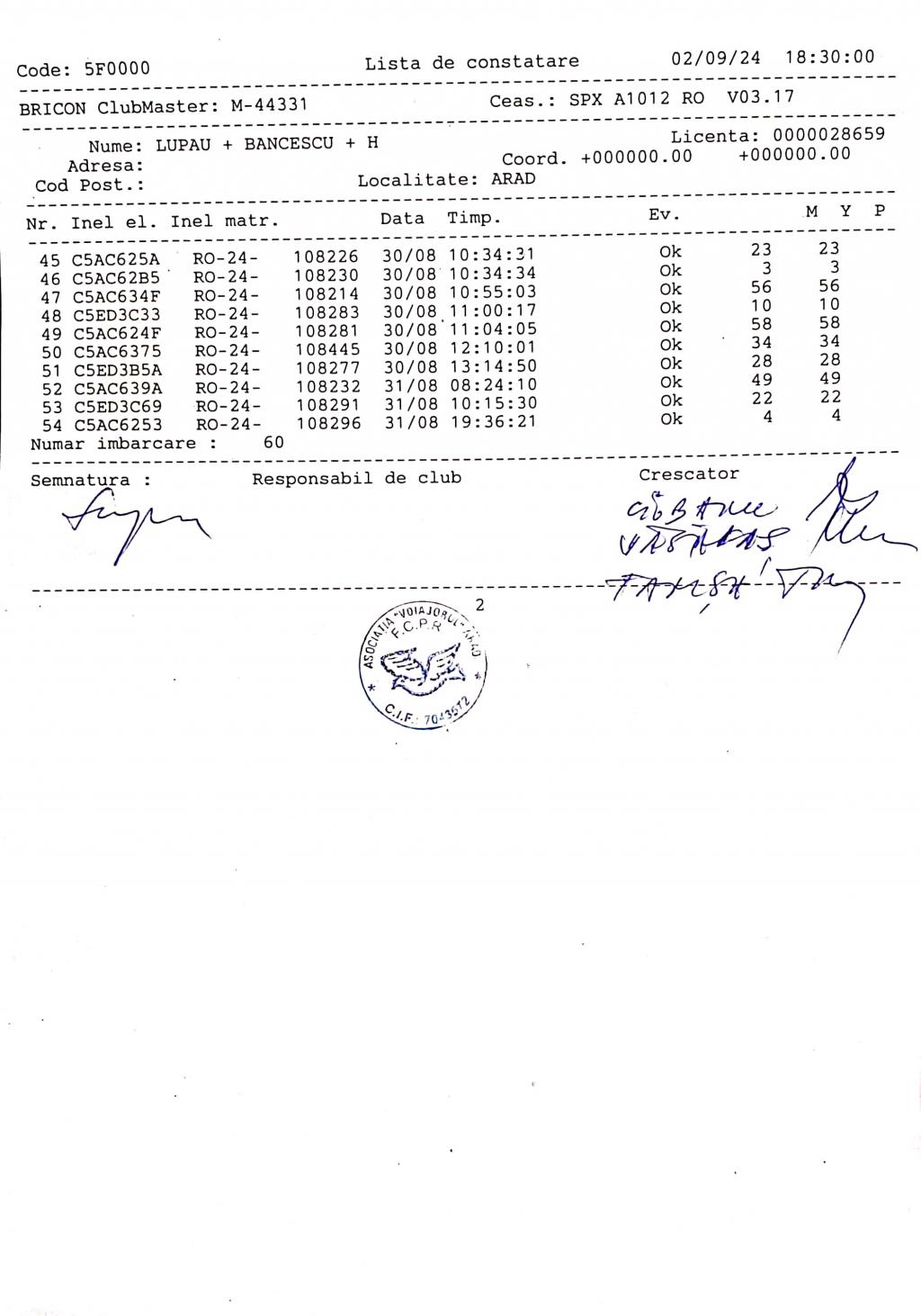 SIGILARE: [Sigilare AR10GEK Centrul Arad etapa de Kecskemet] |