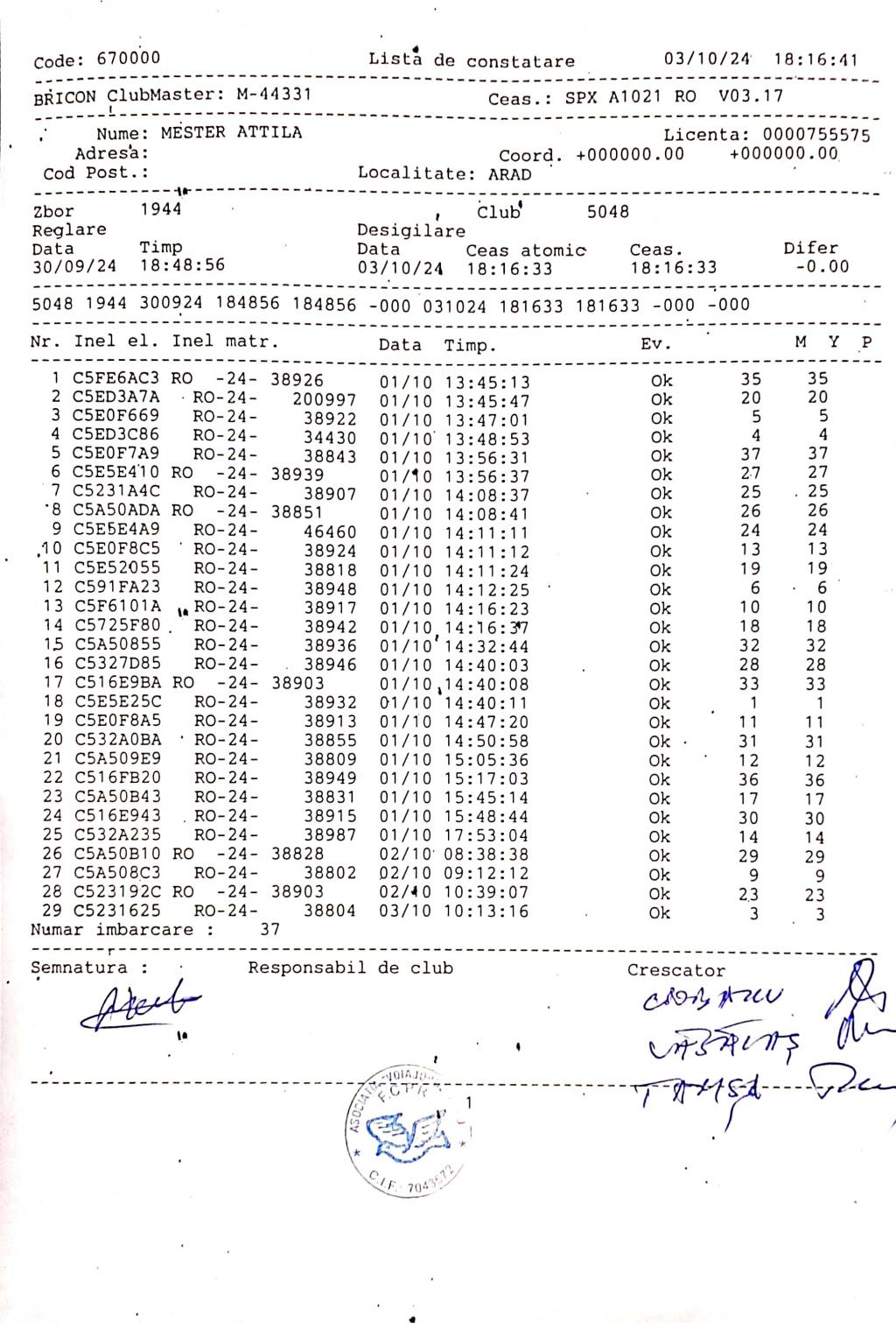 SIGILARE: [Sigilare AR 13 KJK Centrul Arad etapa de Bicske] |