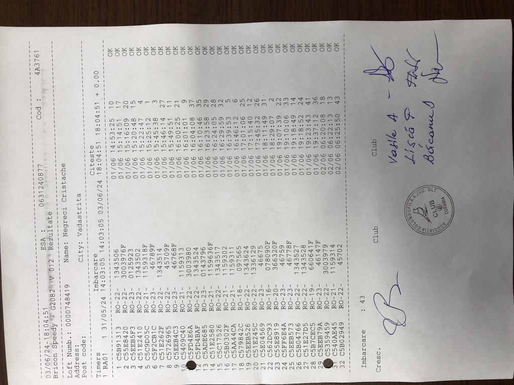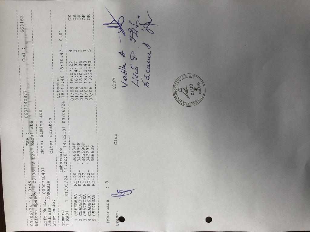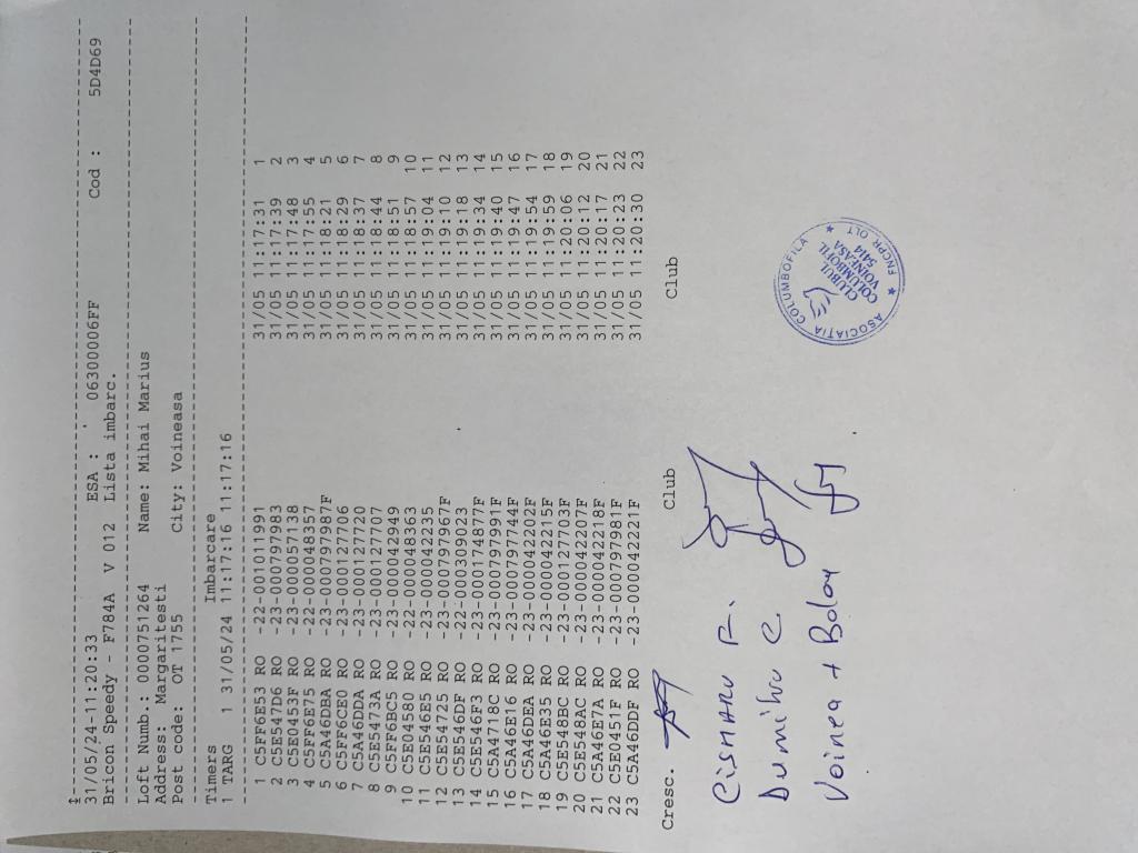 | 59 | Ristea Razvan | OT1903 | BRI | Bals | [IMB P0] | |