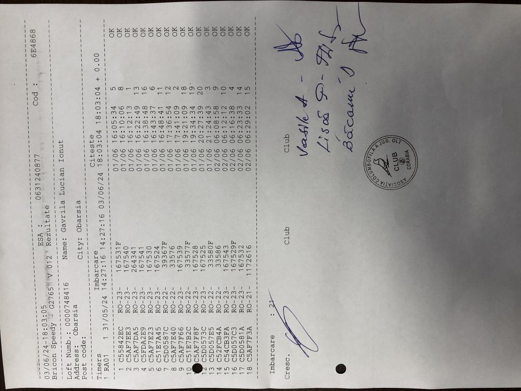 | 21 | Balea Marius Viorel | OT1926 | BEN | Bals | [IMB P0] [IMB P1] | [DES P0] [DES P1] |