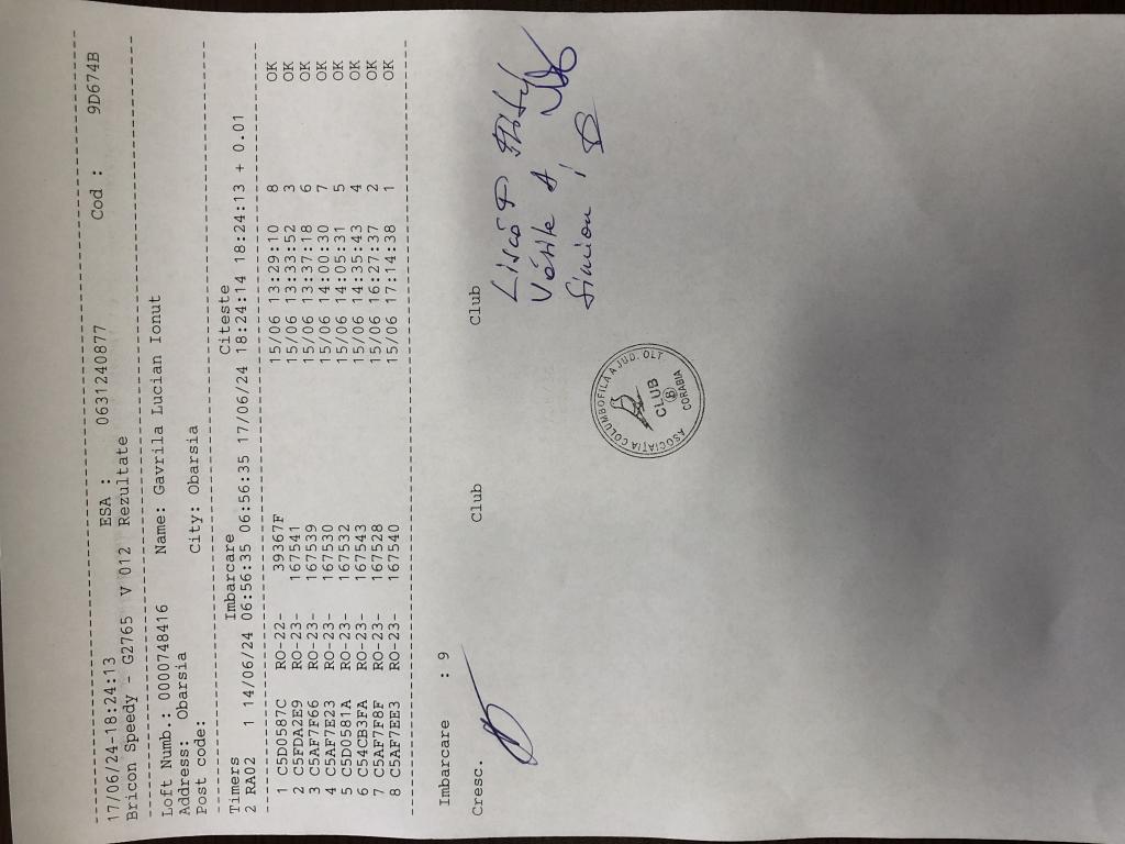| 252 | Vitan Cristian | OT1733 | BEN | Slatina | [IMB P0] | |