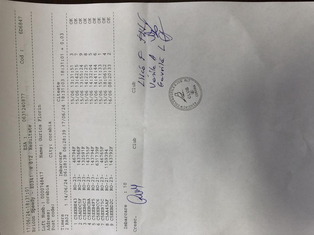| 193 | Petcu Florin | VL967 | BEN | Paloma Dragasani |