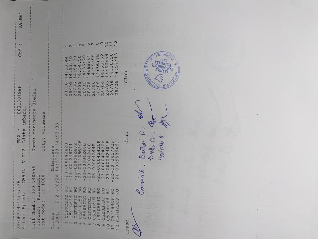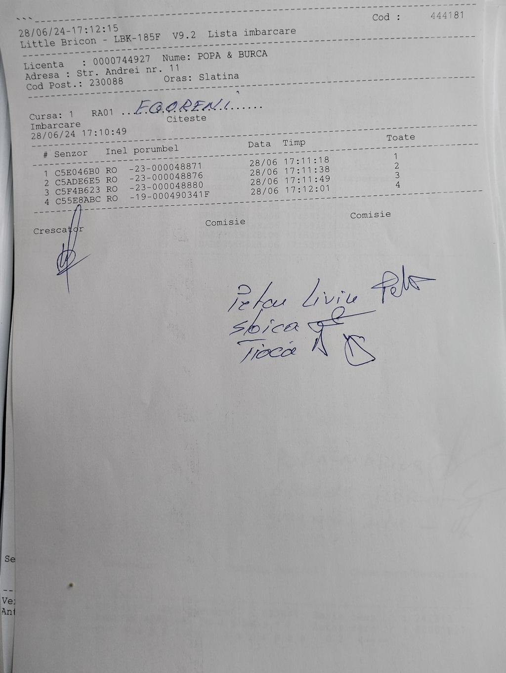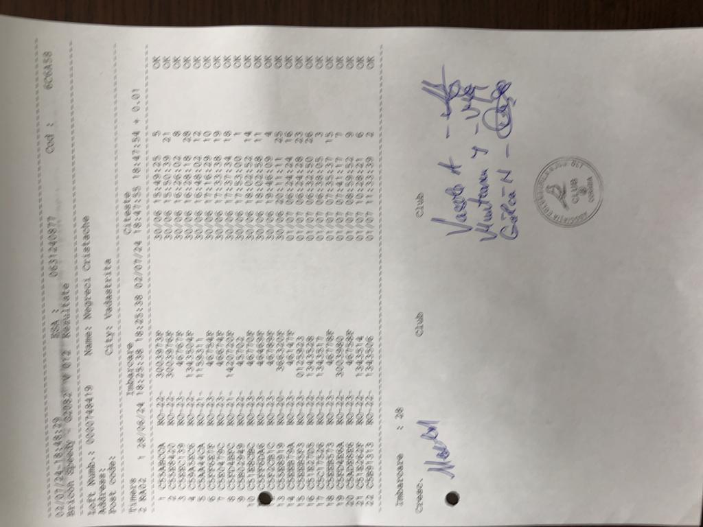 SIGILARE: [Sigilare masina centrul Alexandria pentru etapa fond EGORENI din 30.06.2024] [Egoreni, centru caracal, ma?ina a plecat la Corabia] [Centrul Slatina. Desigilare ma?in? venit? de la centrul Voineasa. Etapa fond] [Sigilare Slatina ] [Sigilii ma?ina de la Caracal] [Sigilii Corabia] RECLEMARE: [Îmbarcare Naidut Ionut] [Îmbarcare Patrascu Traian] [Îmbarcare Gavrila Lucian] SIGILARE: [Sigilare Voineasa] [Desigilare Voineasa] |