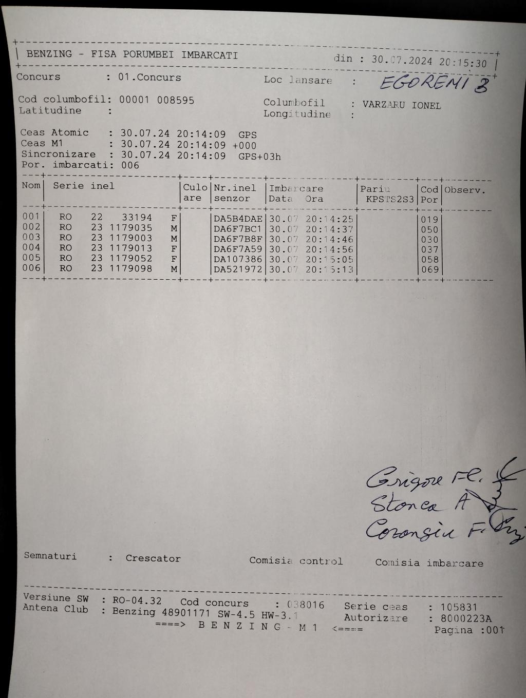 | 1. Procese verbale de imbarcare: | |||