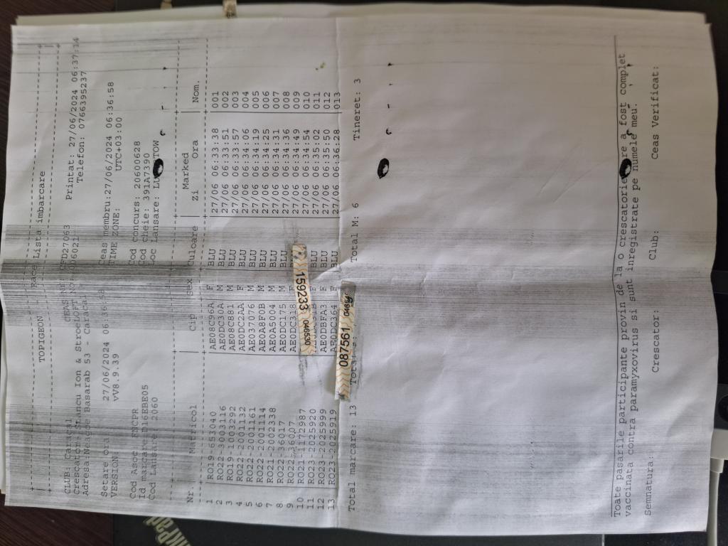 | 234 | Simion Florin Si Mihai Ionut | VL1030 | TOP | Paloma Dragasani |