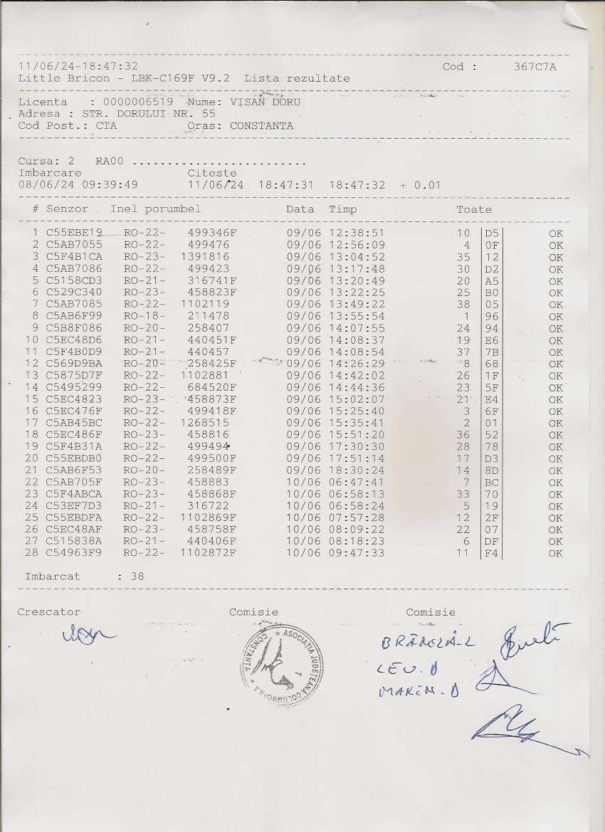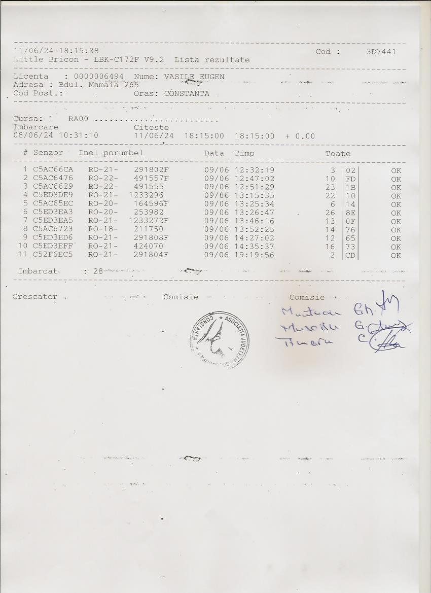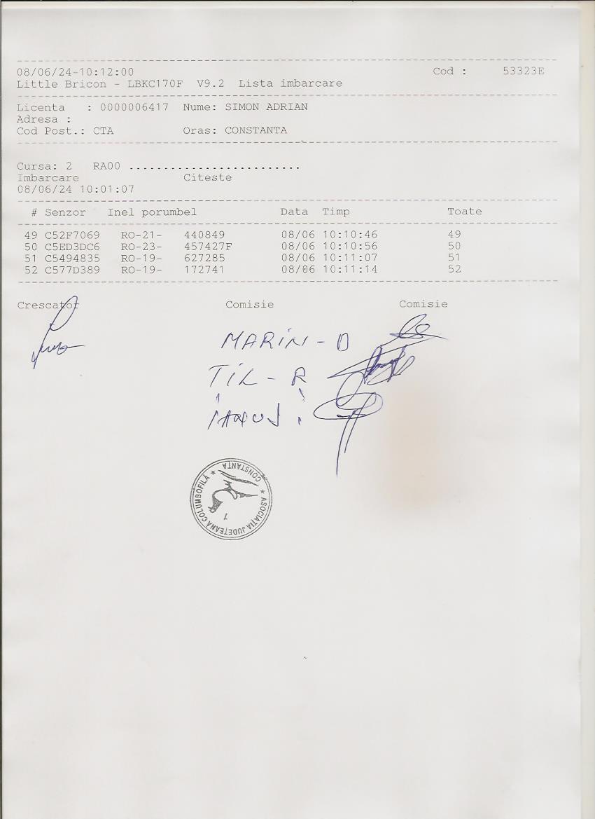 | 60 | Popa Liviu Mihai | CT1001 | TOP | Constanta 2 |