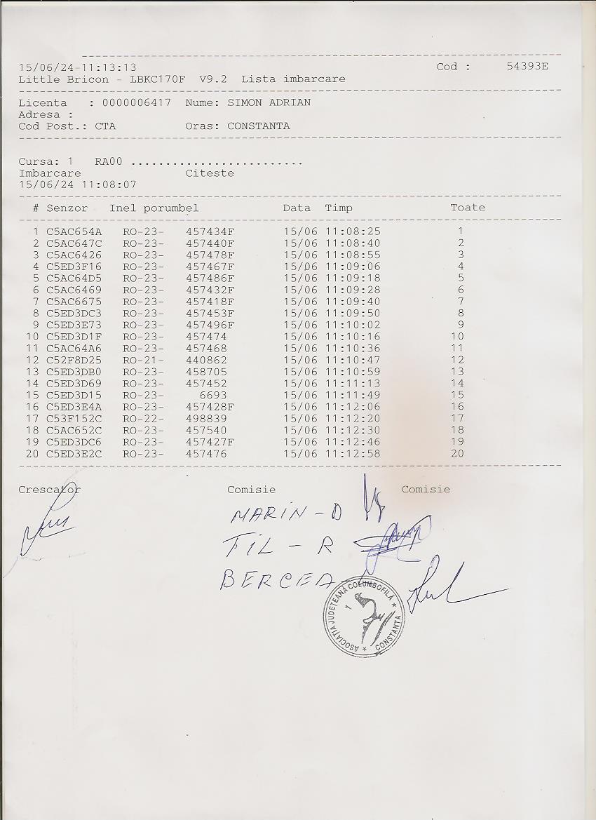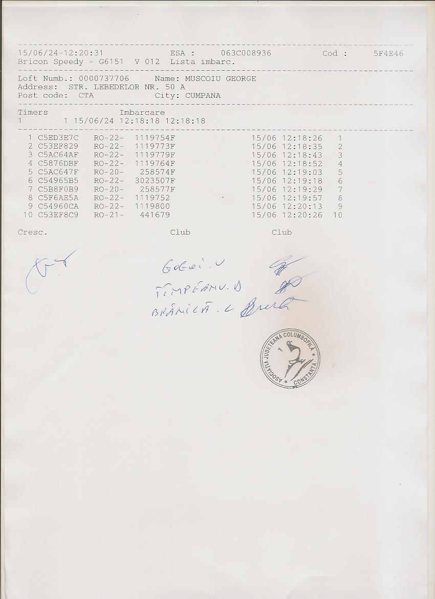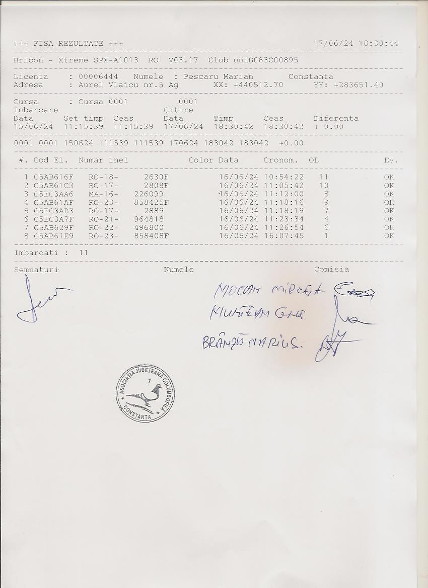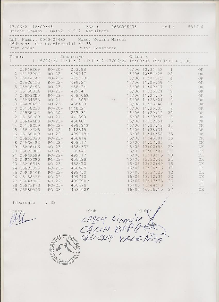 | 37 | Dinca Marian | CT484 | TOP | Constanta 2 |