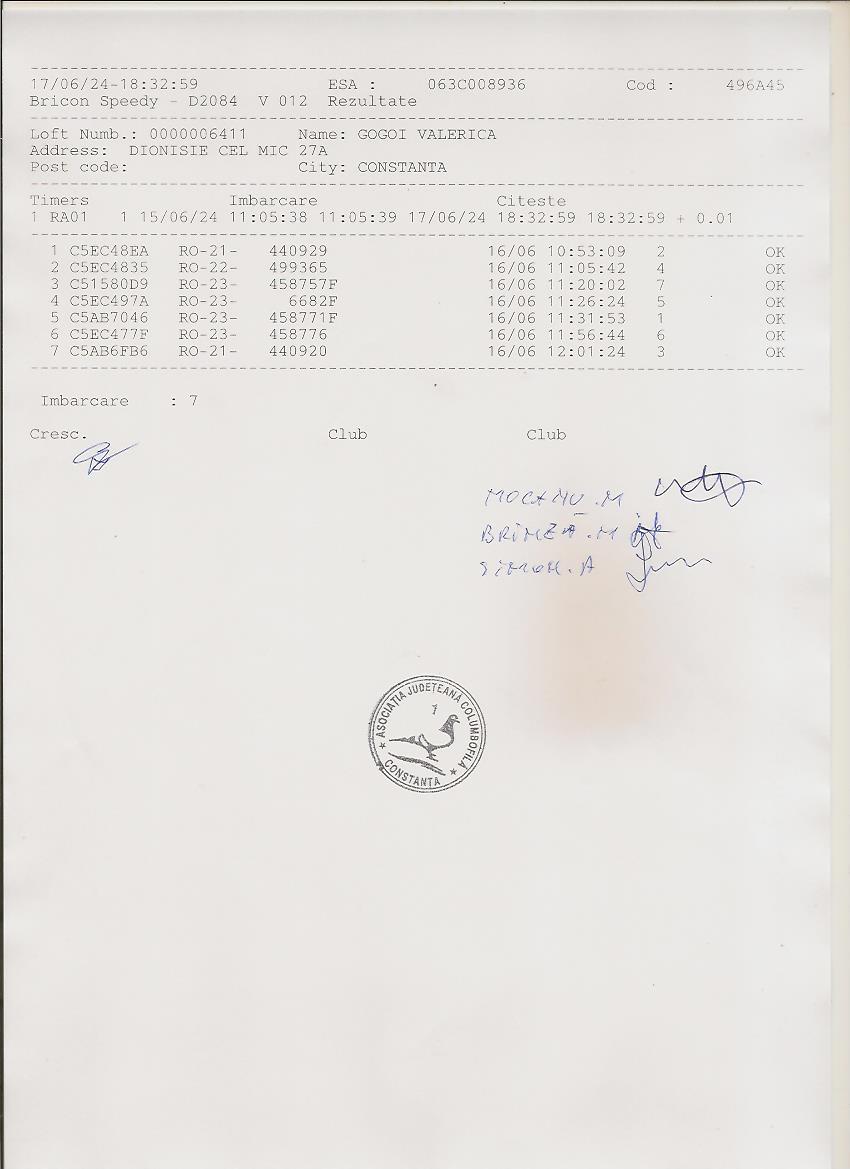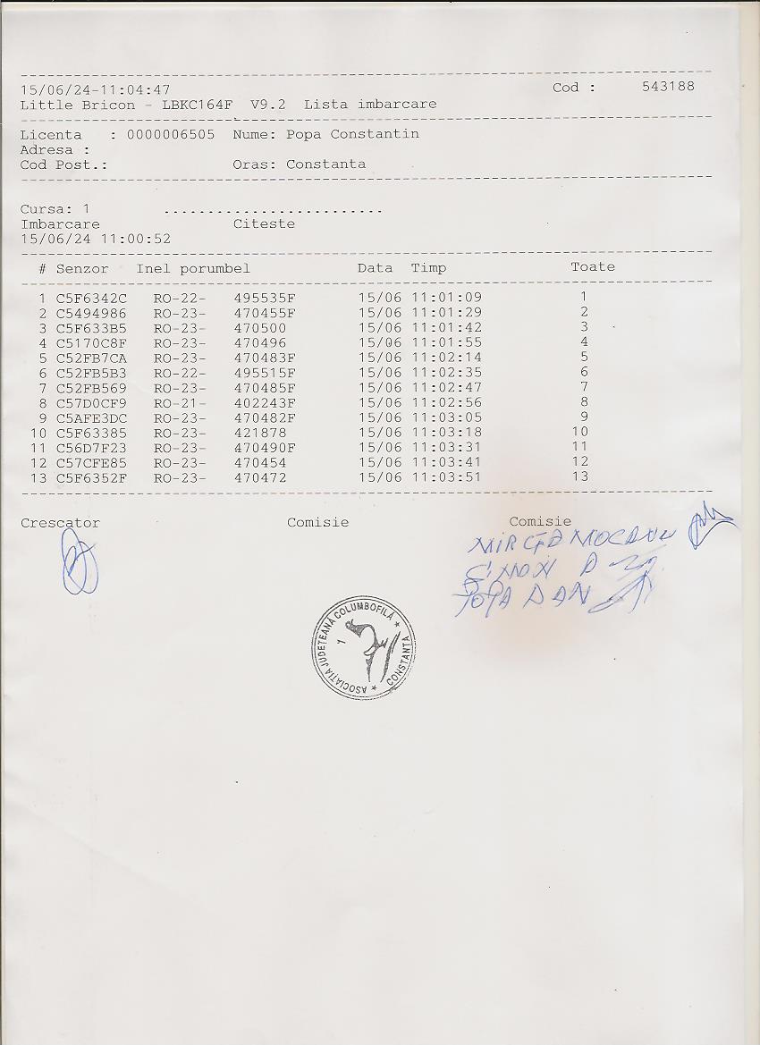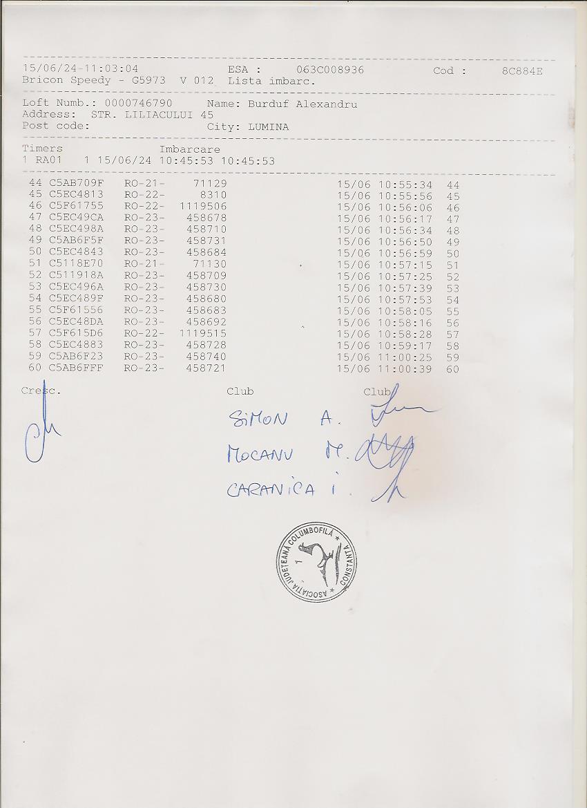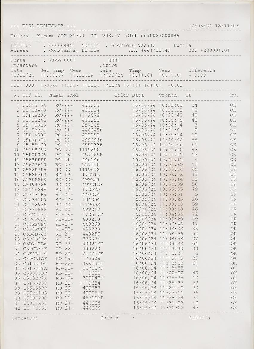 | 37 | Dinca Marian | CT484 | TOP | Constanta 2 |
