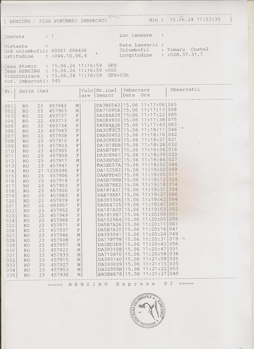 | 70 | Conceatu Ionut + Geoenete Stelica | CT1074 | BEN | Medgidia | [IMB P0] | [DES P0] |